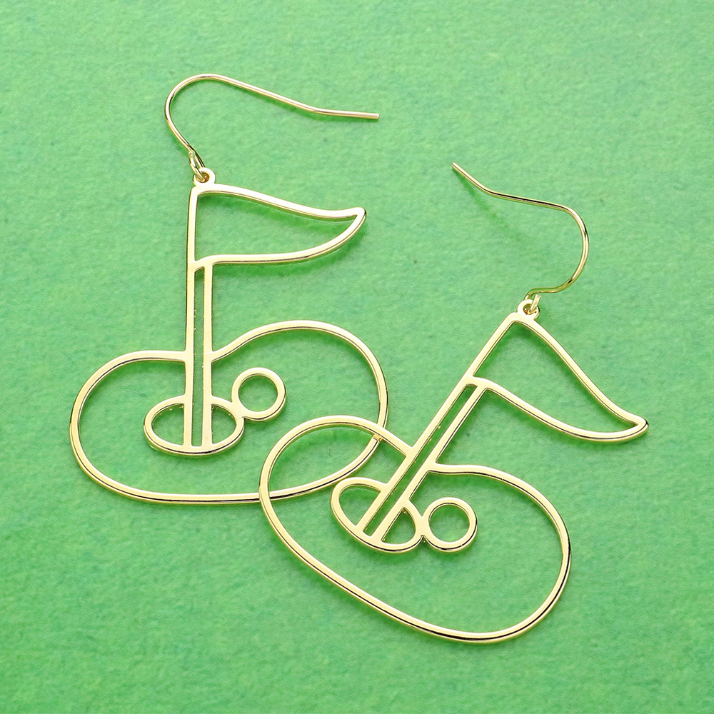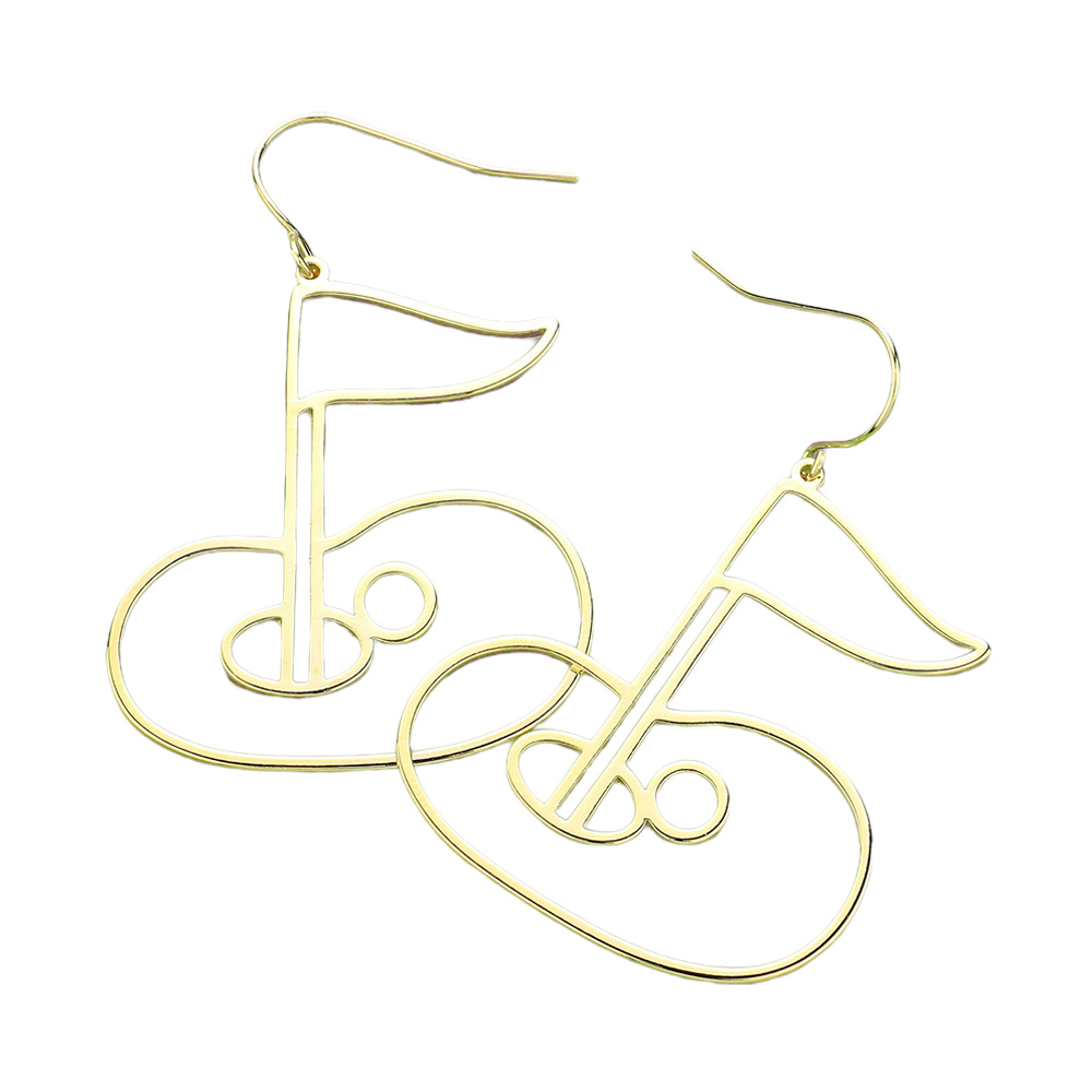 Brass Metal Wire Gold Hole in One Dangle Earrings