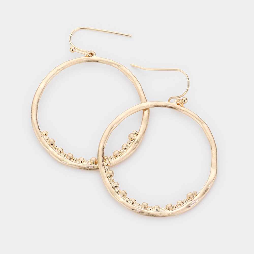 Bubble Detailed Irregular Metal Open Circle Dangle Earrings