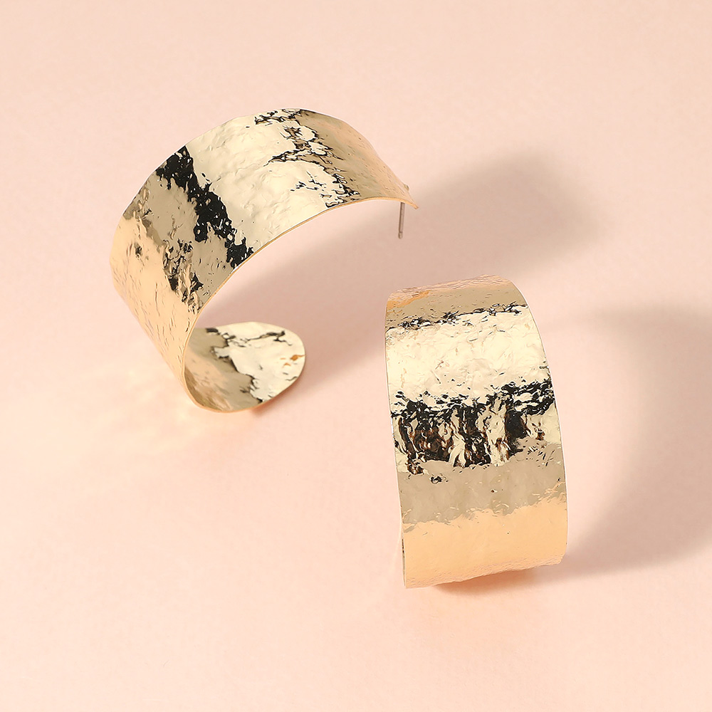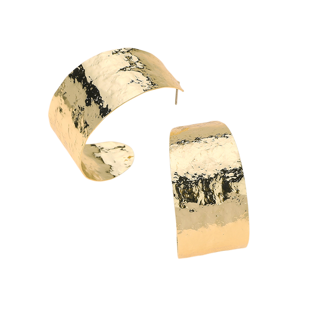Details • Size : 1.75" X 1.75" X 1" • Post Back • Elevate your style with these wide textured statement hoop earrings. Featuring a hammered finish and contemporary design, they add bold flair to any outfit. Lightweight and versatile, they’re perfect for making a chic impression from casual looks to evening ensembles. • Lead and Nickel Compliant