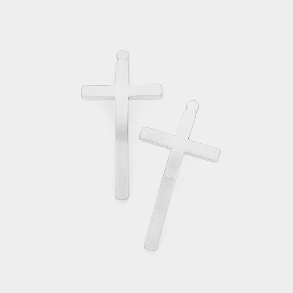 Curved Metal Cross Earrings