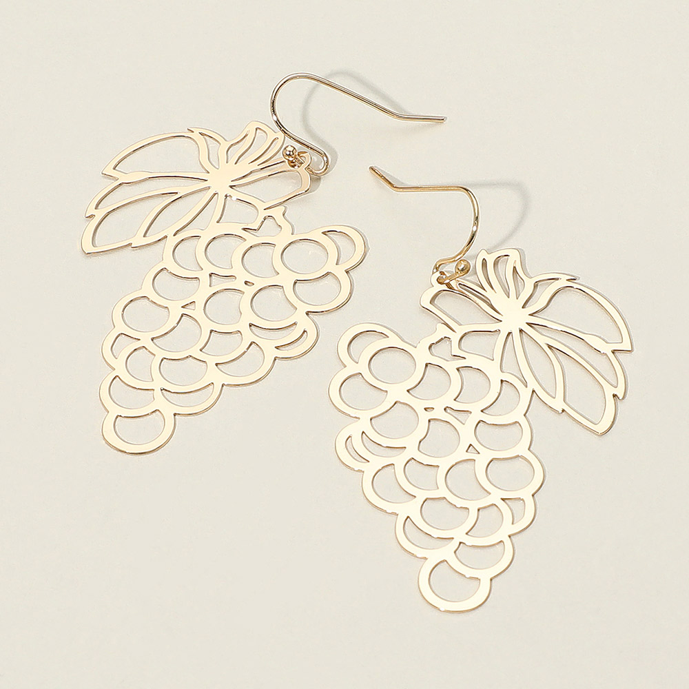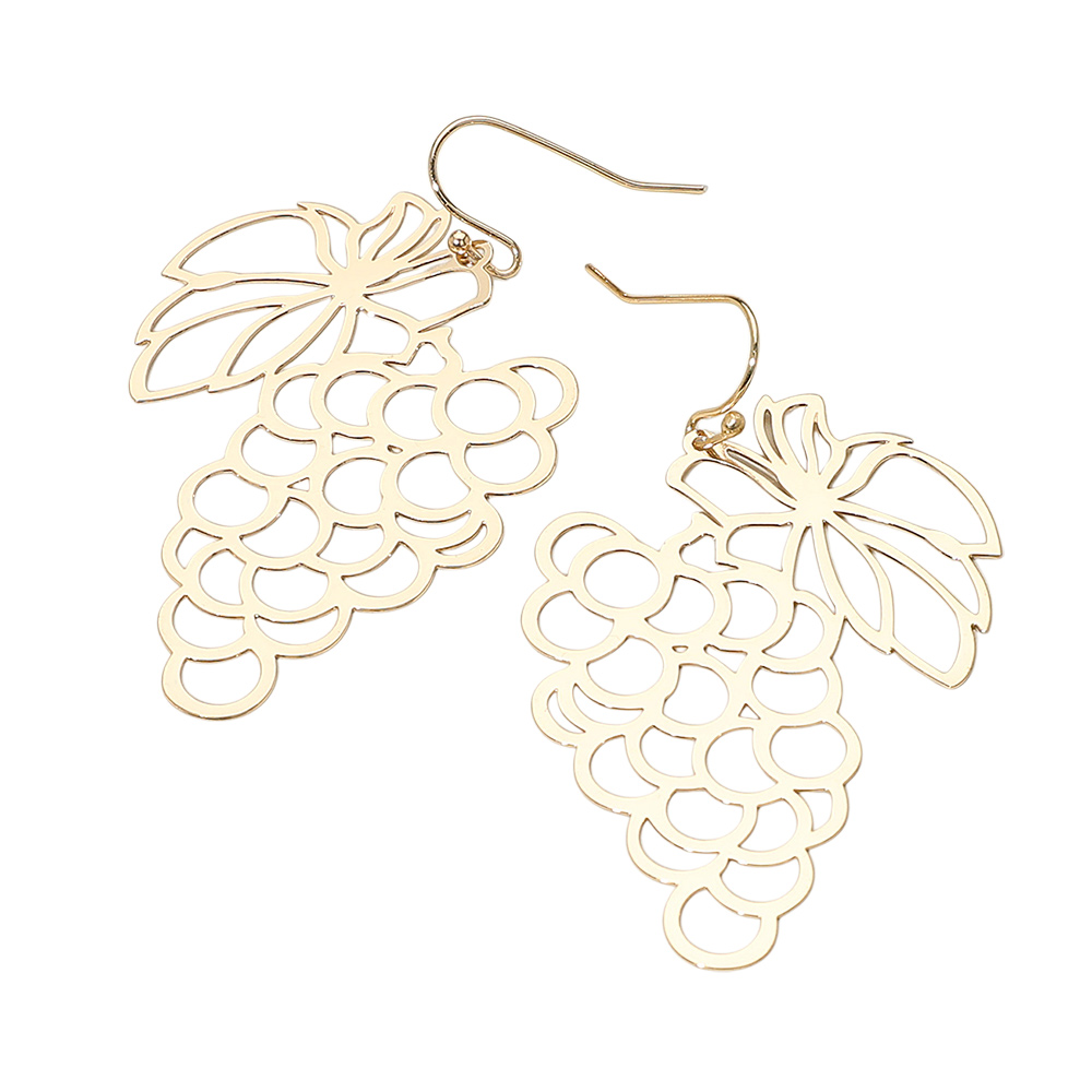 Cutout Brass Metal Grape Dangle Earrings