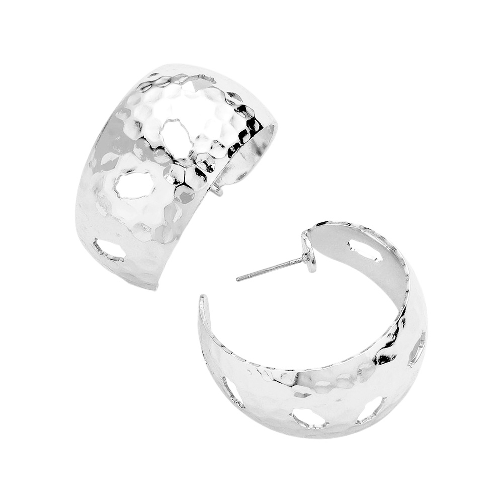 • Add a modern edge to your jewelry collection with wide hammered hoop earrings. Featuring a striking textured finish, these hoops bring effortless sophistication and bold flair to both casual looks and evening wear.