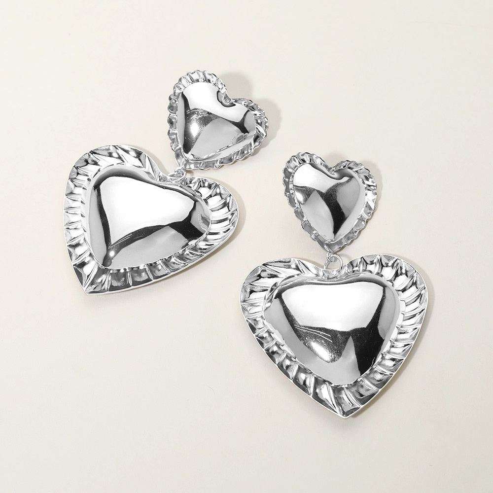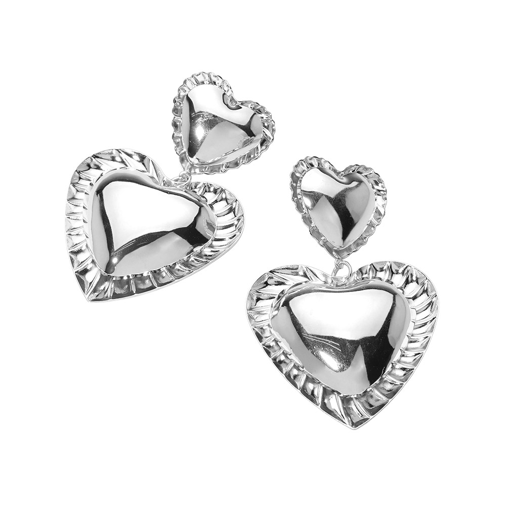 Open Heart Accented Rhinestone Fringe Dangle Evening Earrings