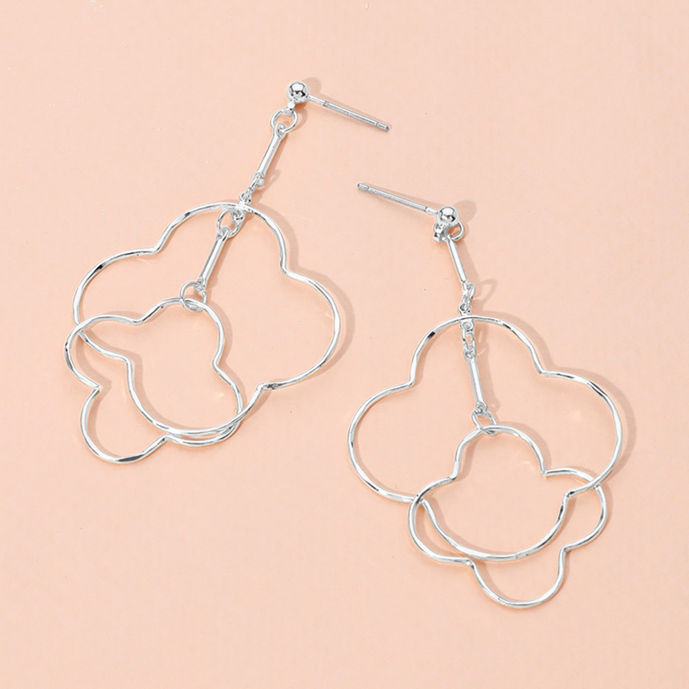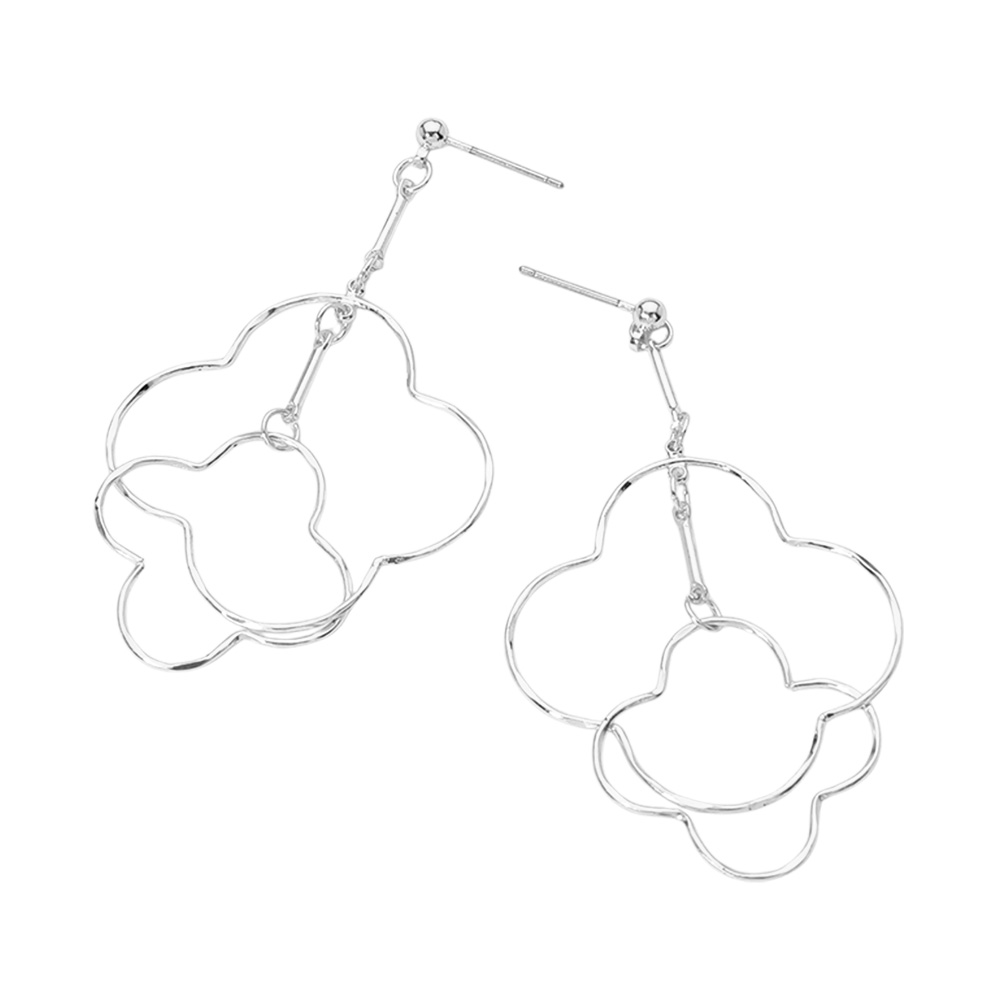 Double Metal Wire Open Quatrefoil Dropdown Dangle Earrings