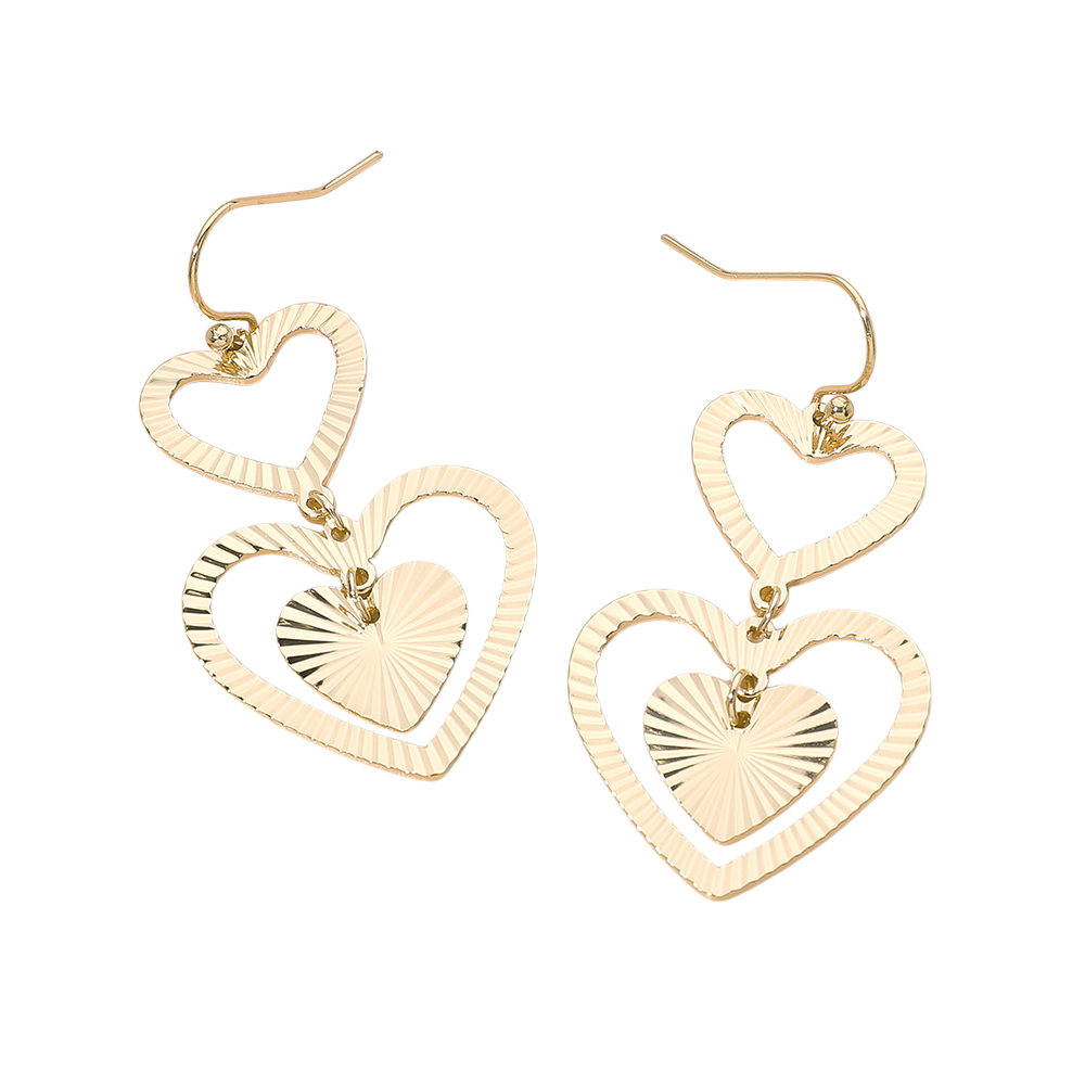 18K Gold Filled Hypoallergenic Textured Heart Hoop Pin Catch Earrings
