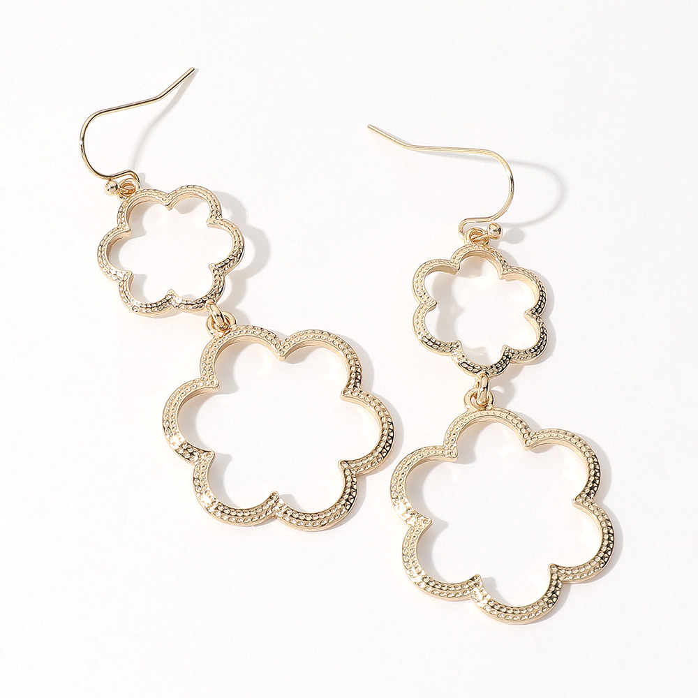 Double Open Metal Flower Link Dropdown Dangle Earrings