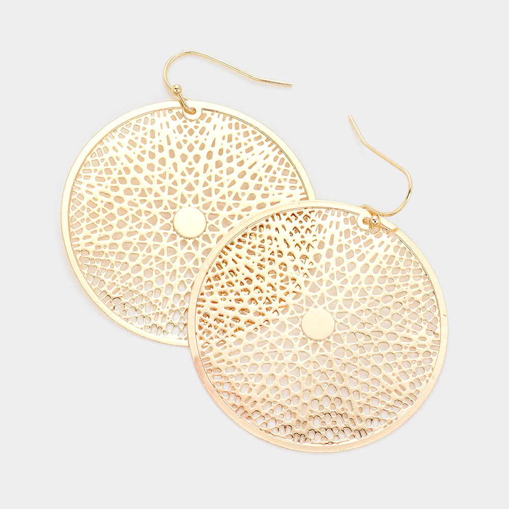 Filigree Brass Metal Round Dangle Earrings
