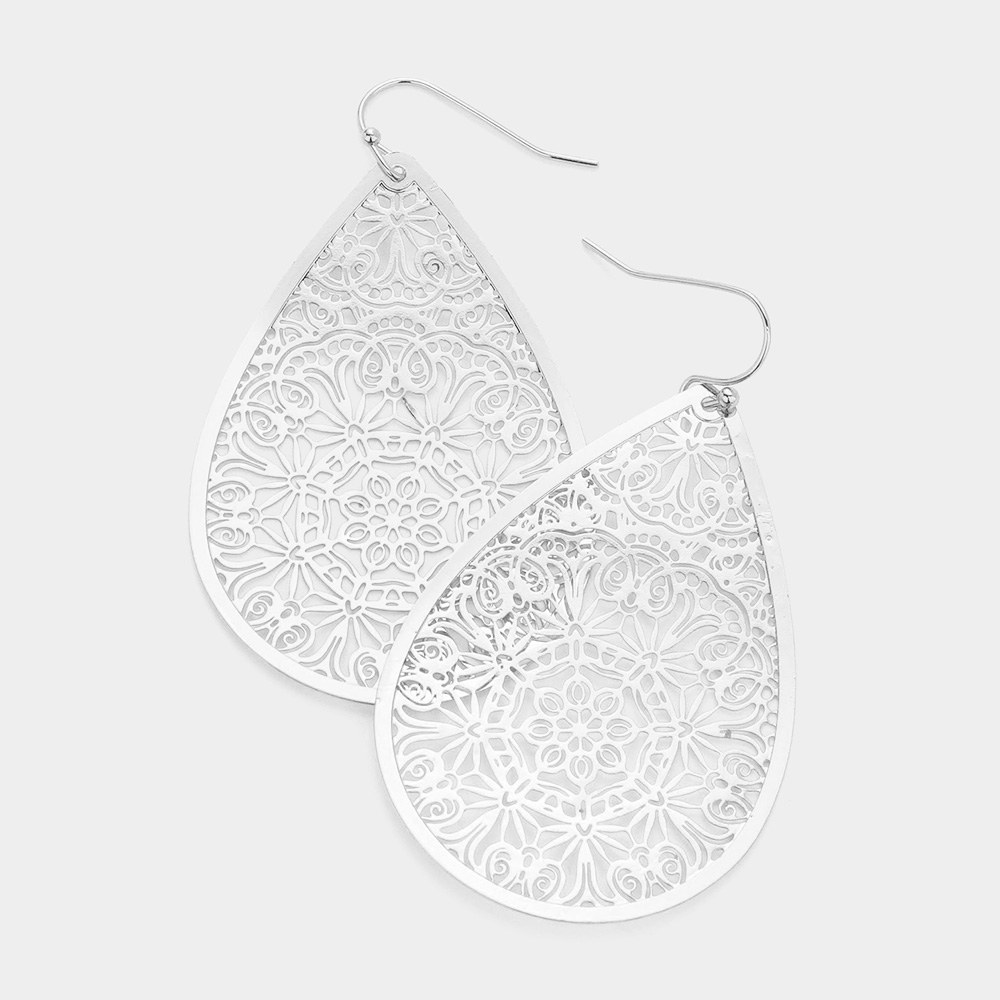 Filigree Brass Metal Teardrop Dangle Earrings