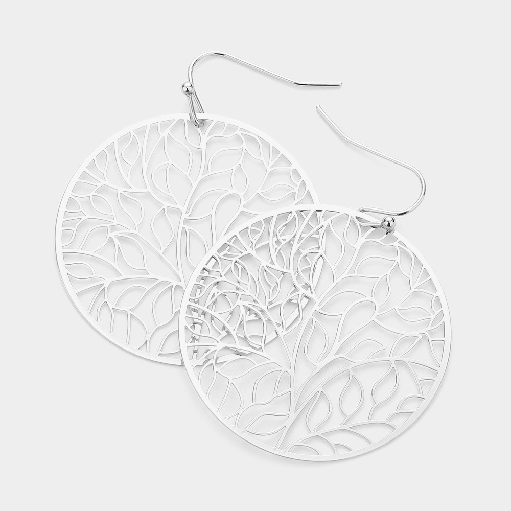 Filigree Leaf Detailed Brass Metal Round Dangle Earrings