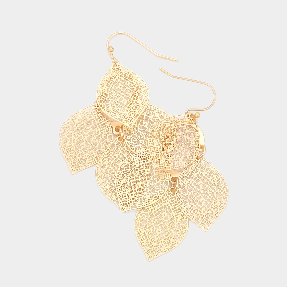 Marquise Stone Embellished Leaf Cluster Dangle Earrings
