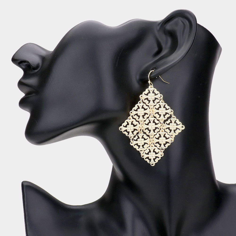 Metal Filigree Double Leaves Drop Dangle Earrings