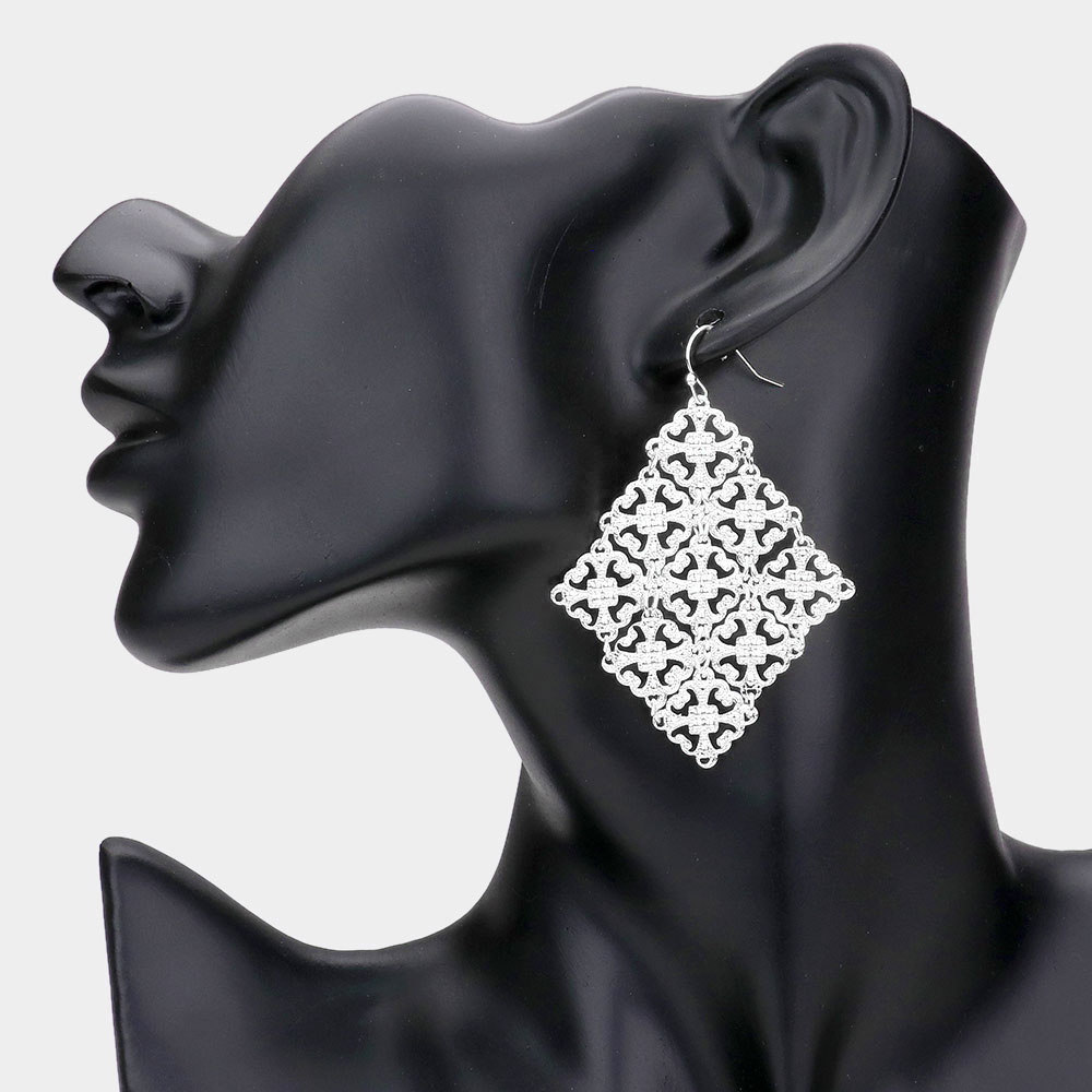 Brass Metal Filigree Abstract Oval Dangle Earrings