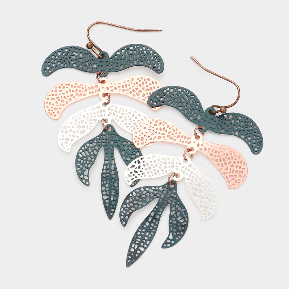 Metal Filigree Leaf Dangle Earrings