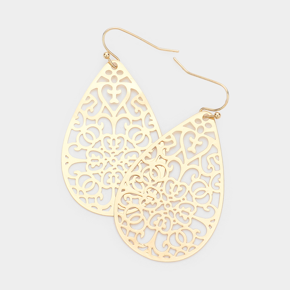 Filigree Leaf Detailed Brass Metal Round Dangle Earrings