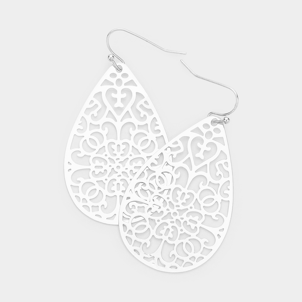 Filigree Metal Teardrop Dangle Earrings