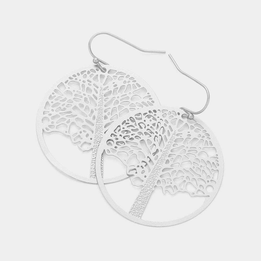 Brass Matte Metal Tree of Life Filigree Dangle Earrings