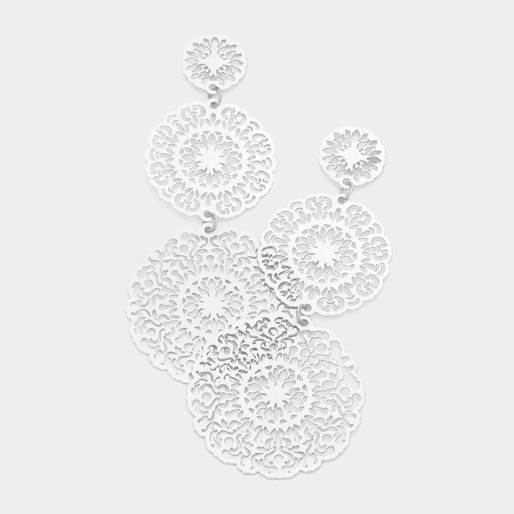 Metal Filigree Double Leaves Drop Dangle Earrings