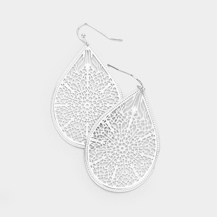 Metal Filigree Double Leaves Drop Dangle Earrings