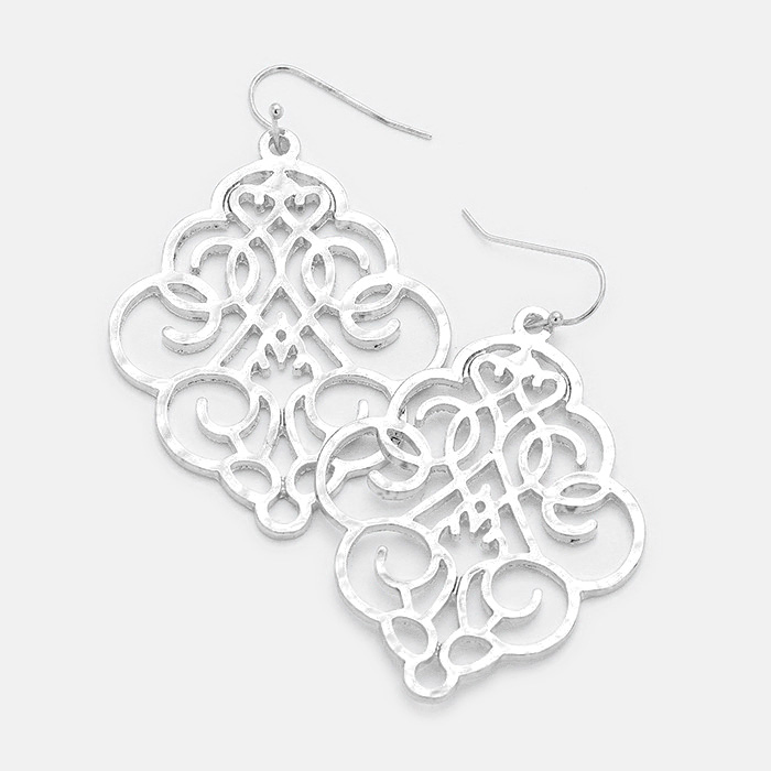 Flower Leaf Metal Filigree Round Dangle Earrings