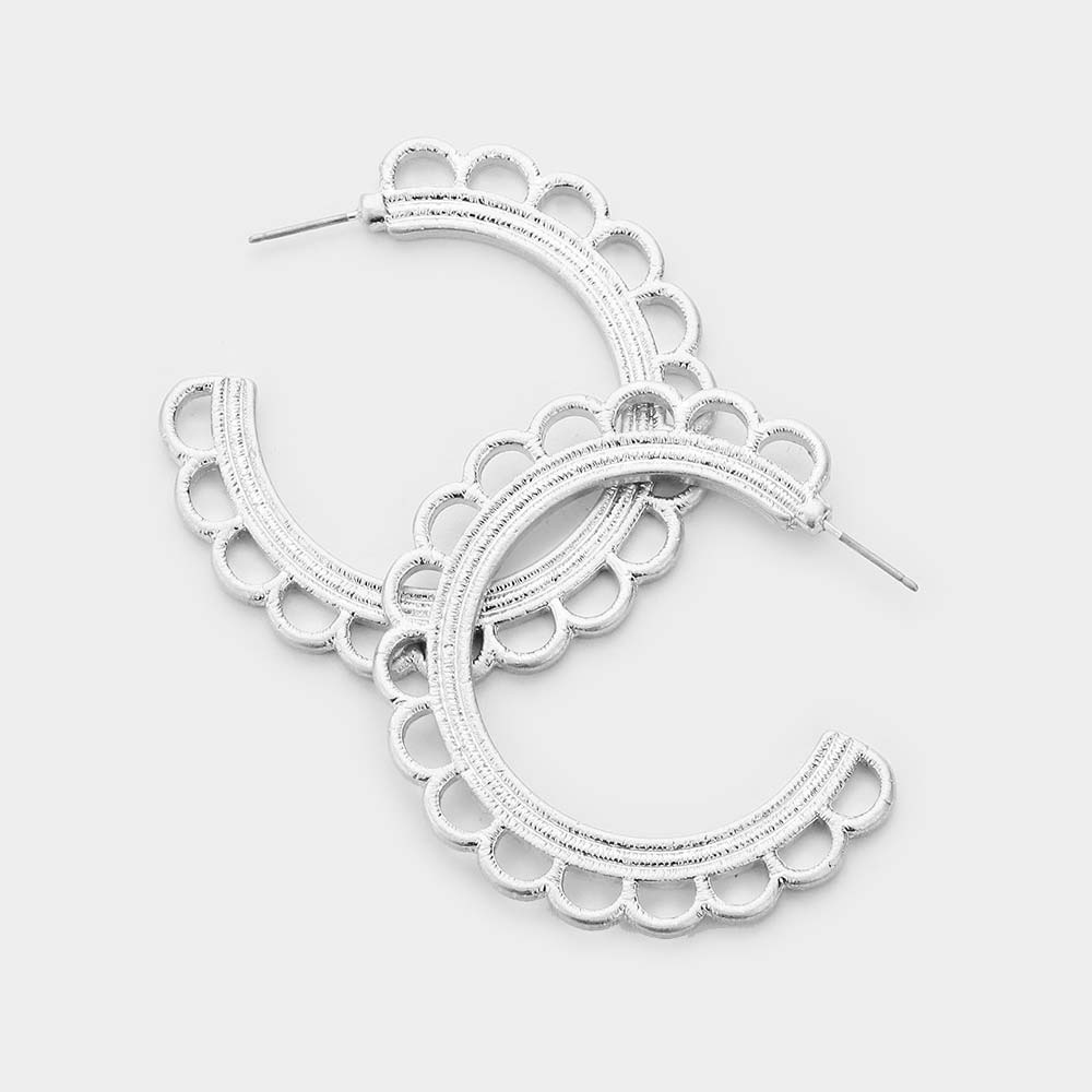 Pearl Pointed Hammered Open Metal Ring Dangle Earrings