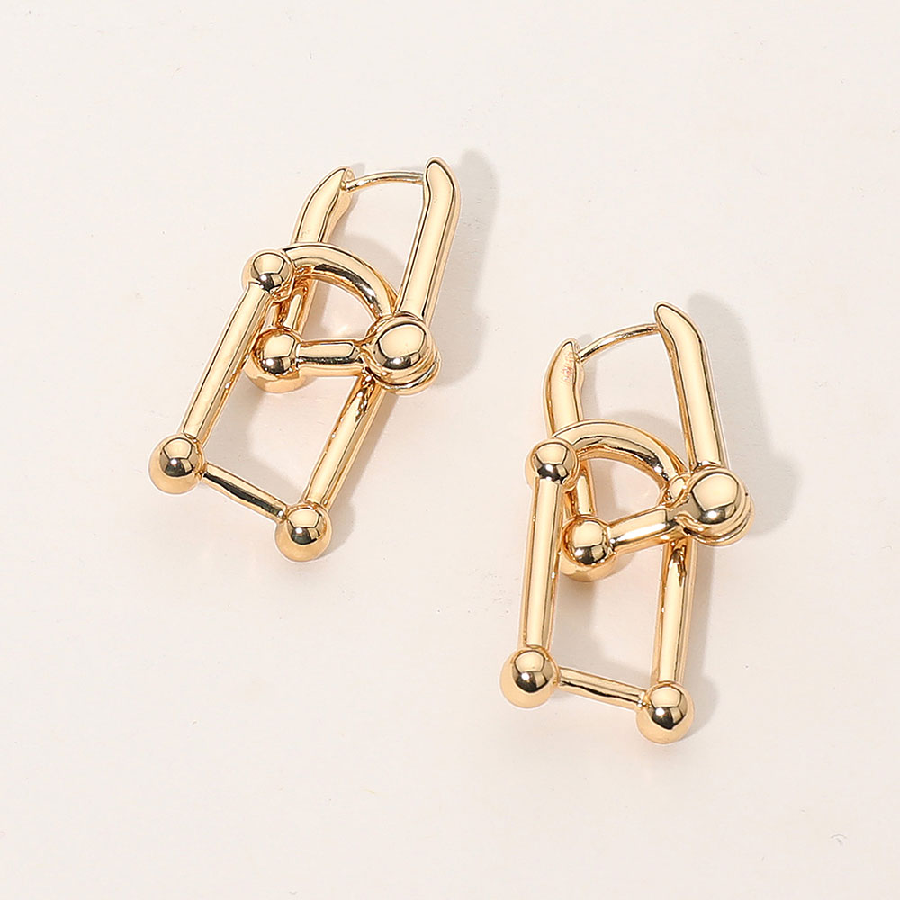 Details • Size : 0.6" X 1.6" • Post Back • Elevate your jewelry collection with these geometric linked earrings featuring a sculptural, minimalist design. Perfect for adding a sleek, modern accent to any outfit, they blend elegance and edge, making them a versatile statement piece for day or night. • Lead and Nickel Compliant