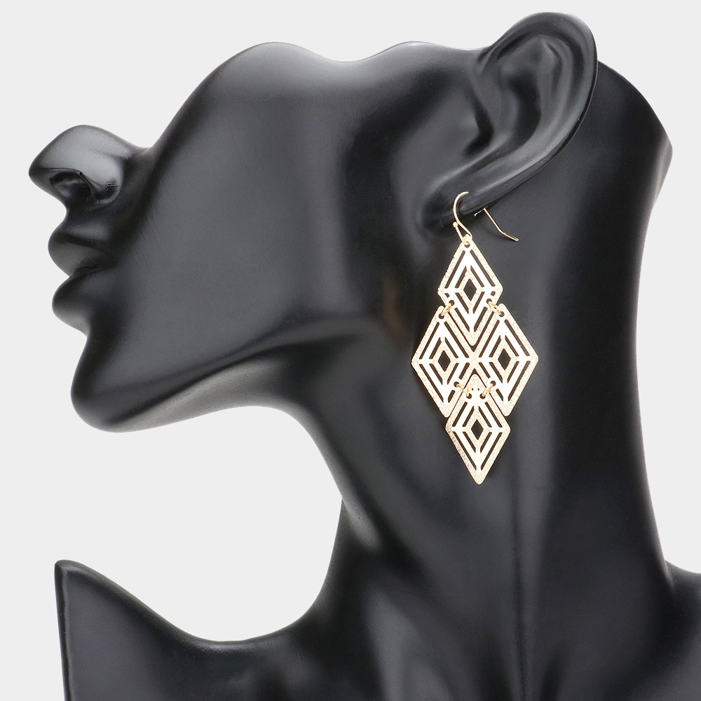 Geometric Metal Rhombus Link Dangle Earrings