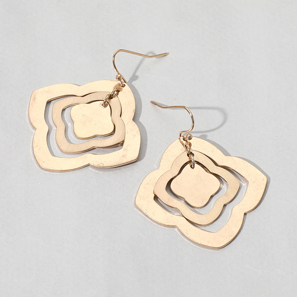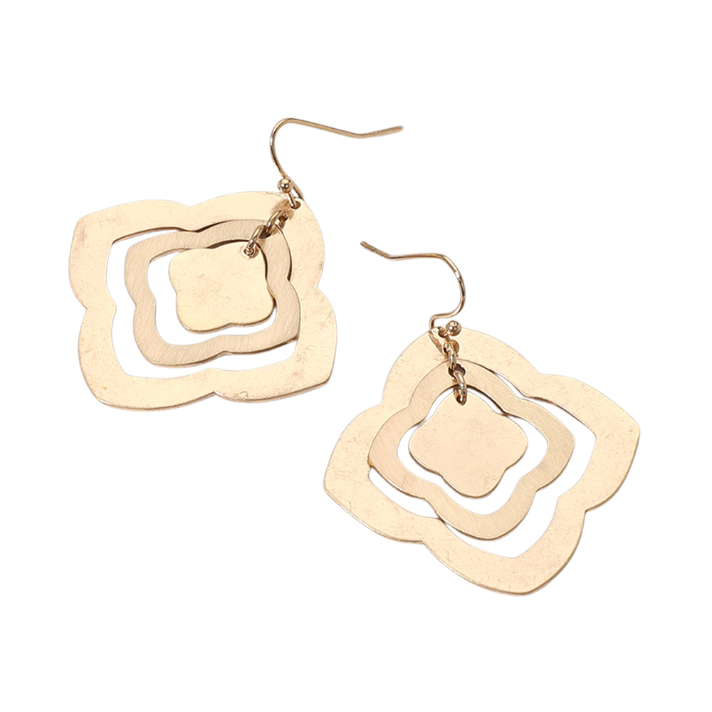 Geometric Quatrefoil Metal Plate Concentric Dangle Earrings