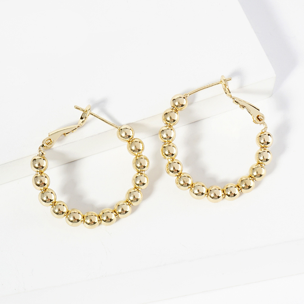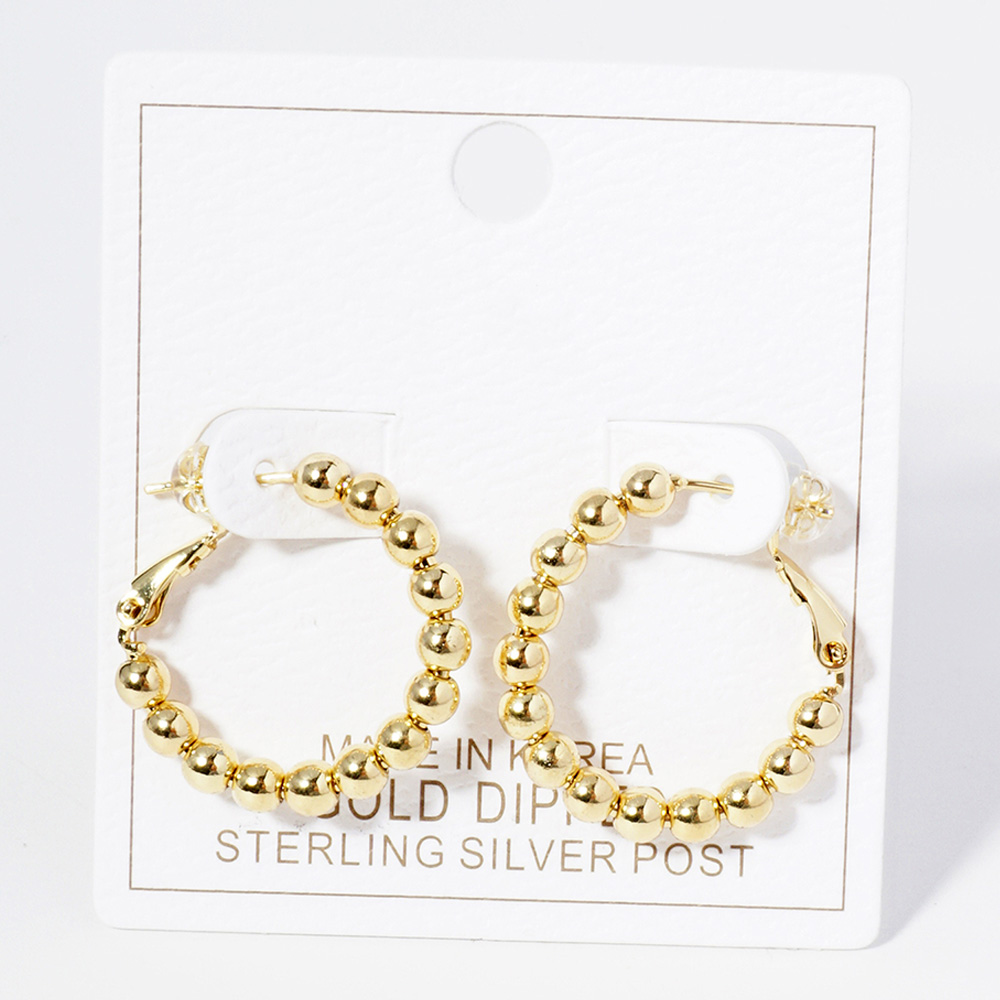 Gold Dipped Metal Ball Beaded Hoop Earrings