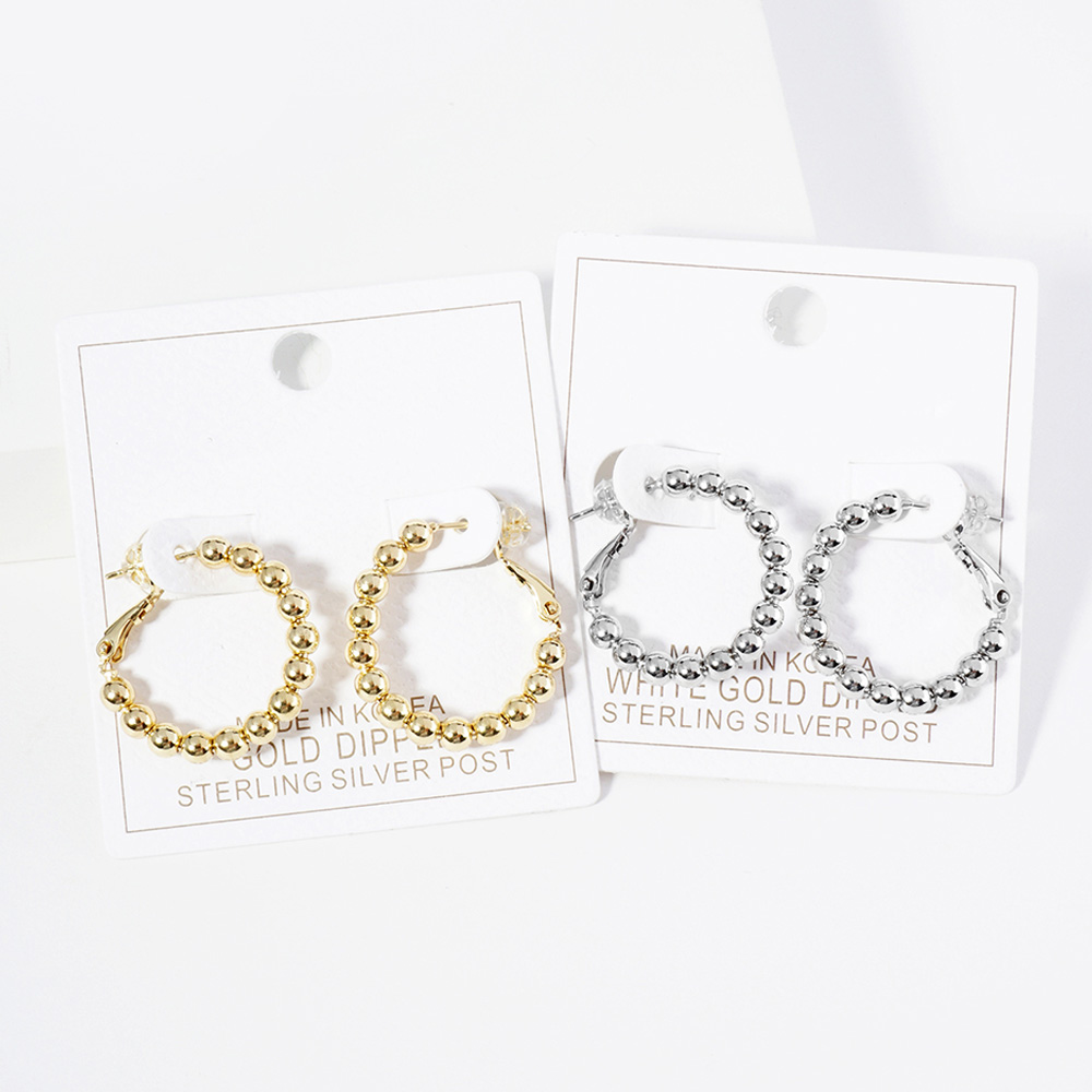 White Gold Dipped Metal Ball Beaded Hoop Earrings