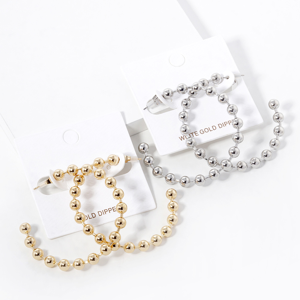 White Gold Dipped Metal Ball Hoop Earrings