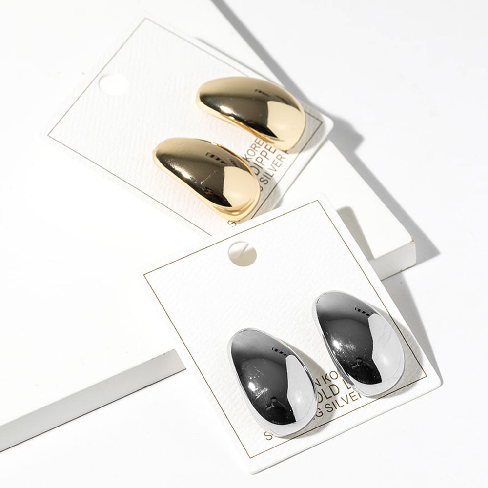 • Minimal teardrop stud earrings designed with a smooth, high-shine surface for a bold yet refined look. The rounded silhouette offers timeless appeal, making these studs easy to style with both casual and elevated outfits while adding polished elegance to any accessory assortment.