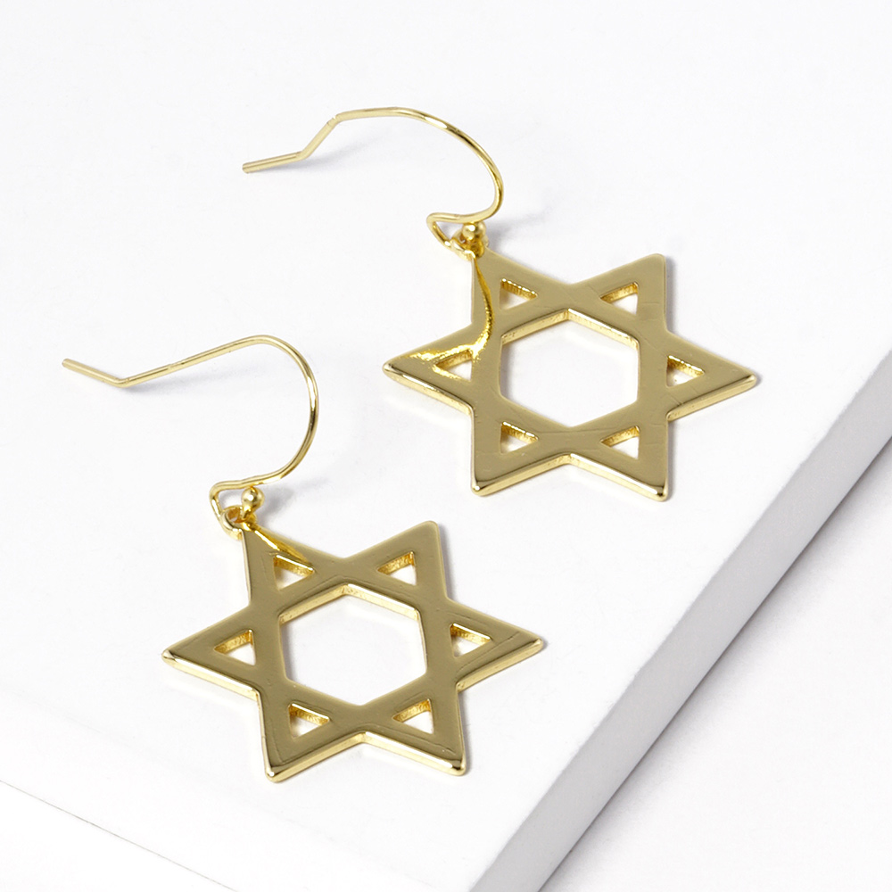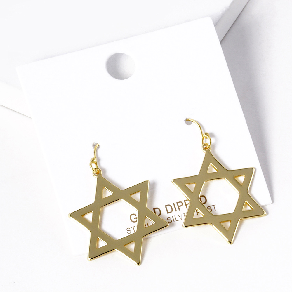 Gold Dipped Star Of David Dangle Earrings