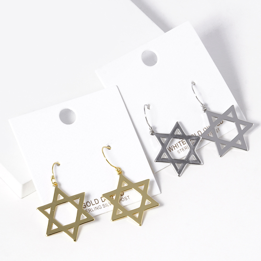 White Gold Dipped Star Of David Dangle Earrings