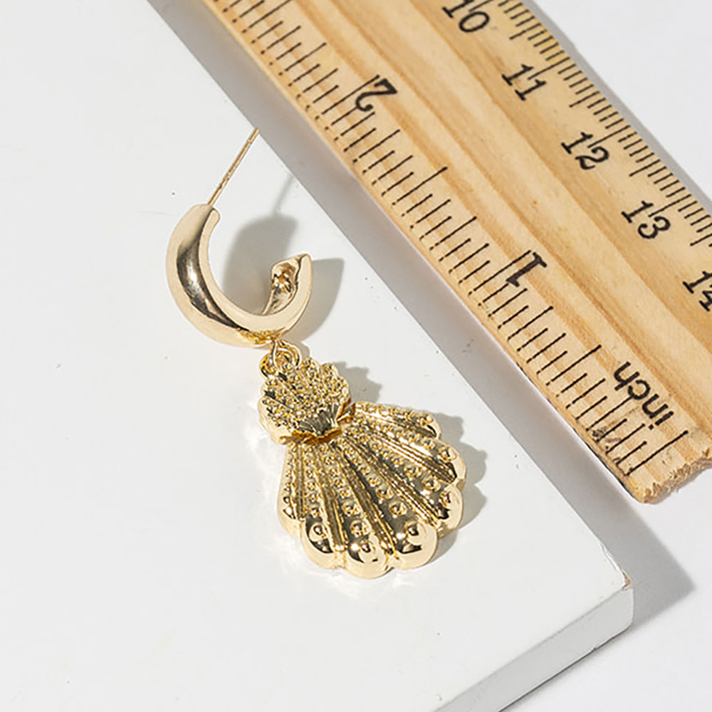 Gold Dipped Textured Scallop Shell Drop Dangle Mini Hoop Earrings