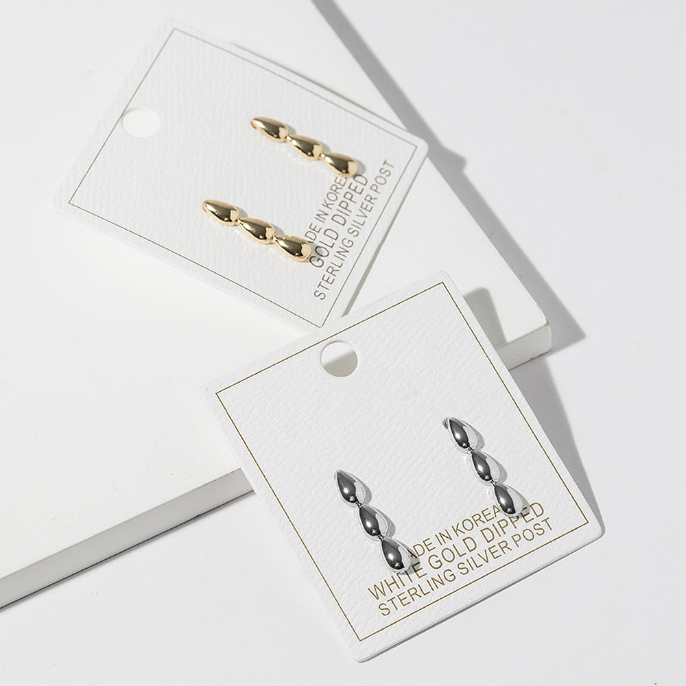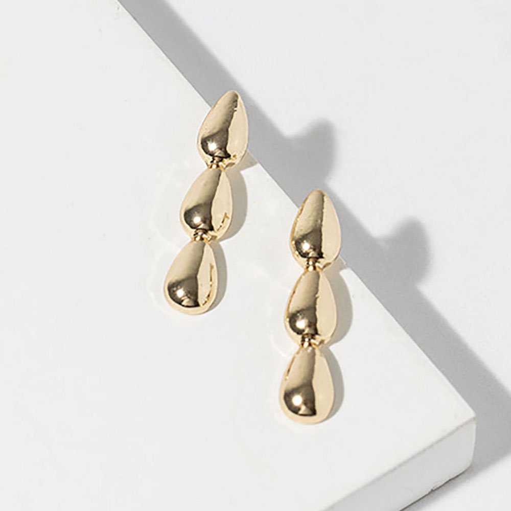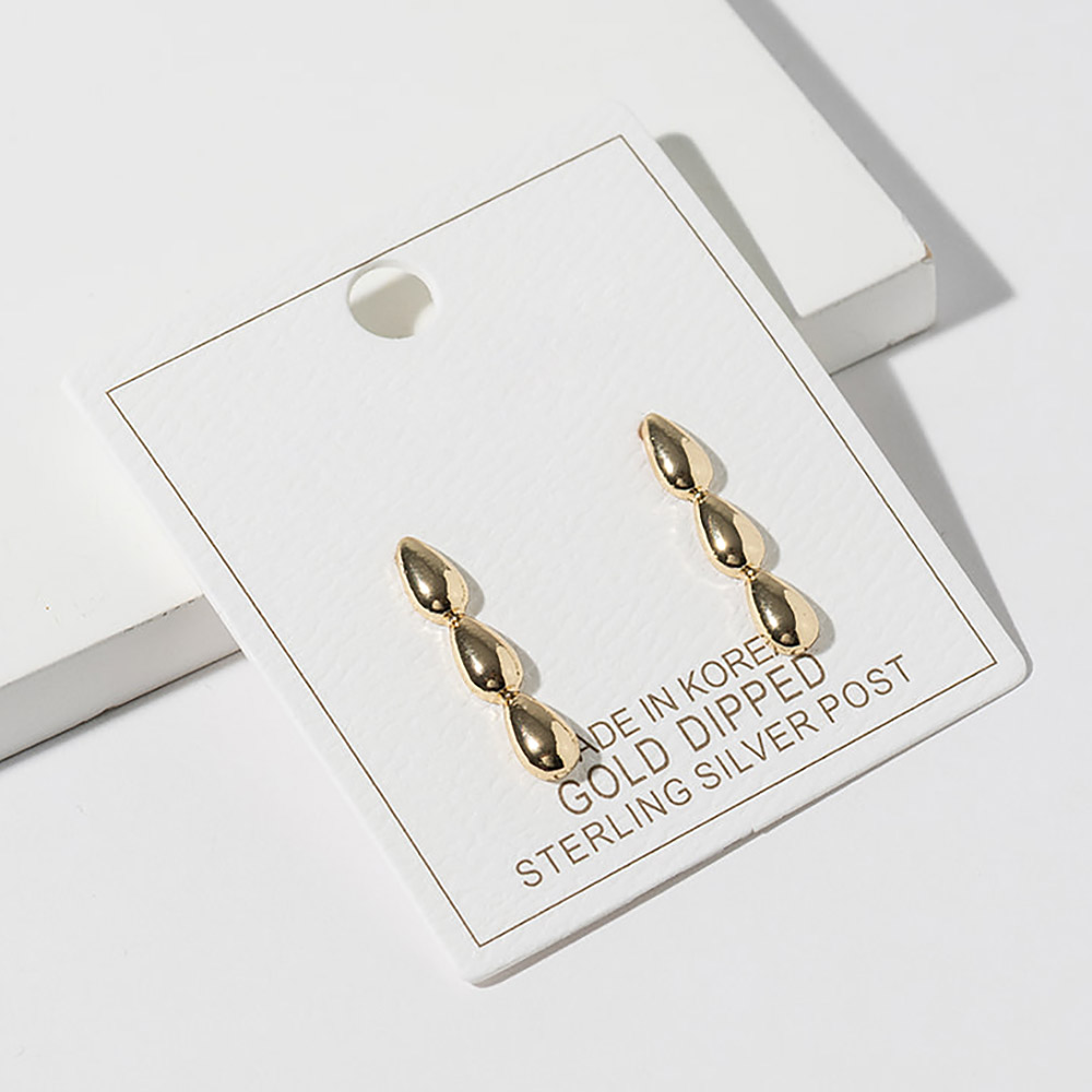 • Elegant stud earrings featuring a sleek triple drop design with softly rounded shapes arranged in a vertical silhouette. Designed to add subtle movement and refined style, these studs are perfect for everyday wear, work outfits, and dressy occasions, offering modern simplicity and timeless appeal for any jewelry collection.