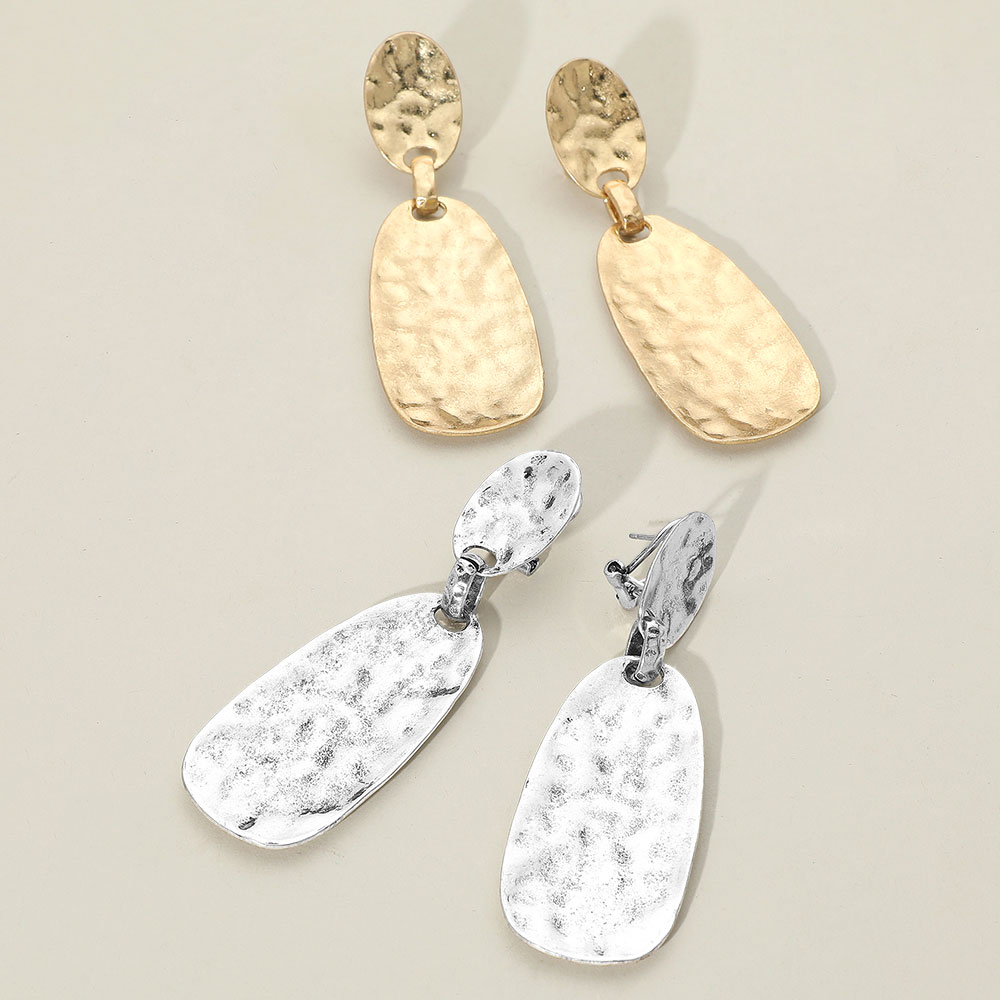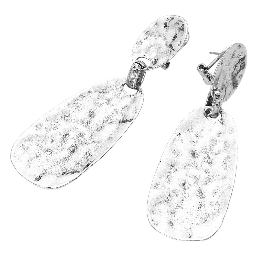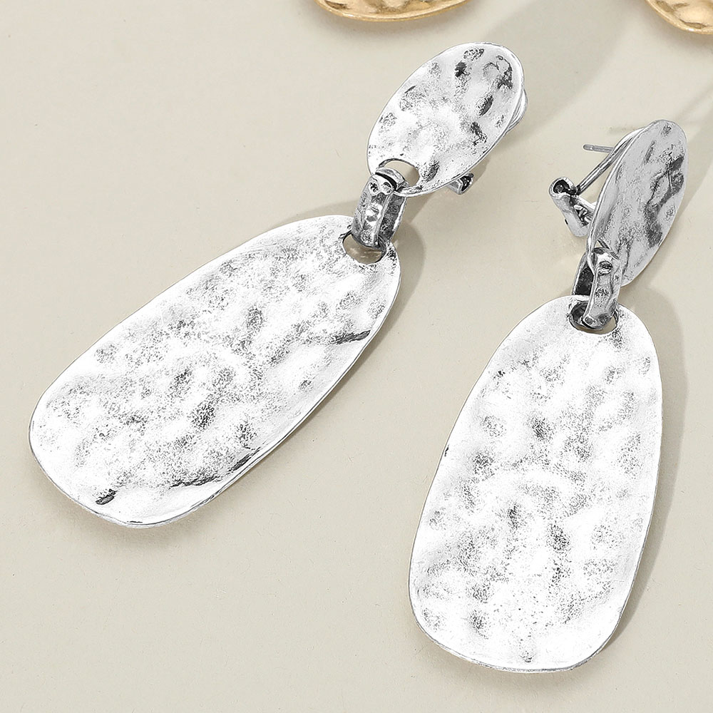 Hammered Brushed Metal Sculptural Plate Drop Earrings