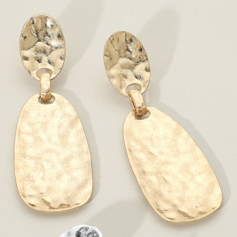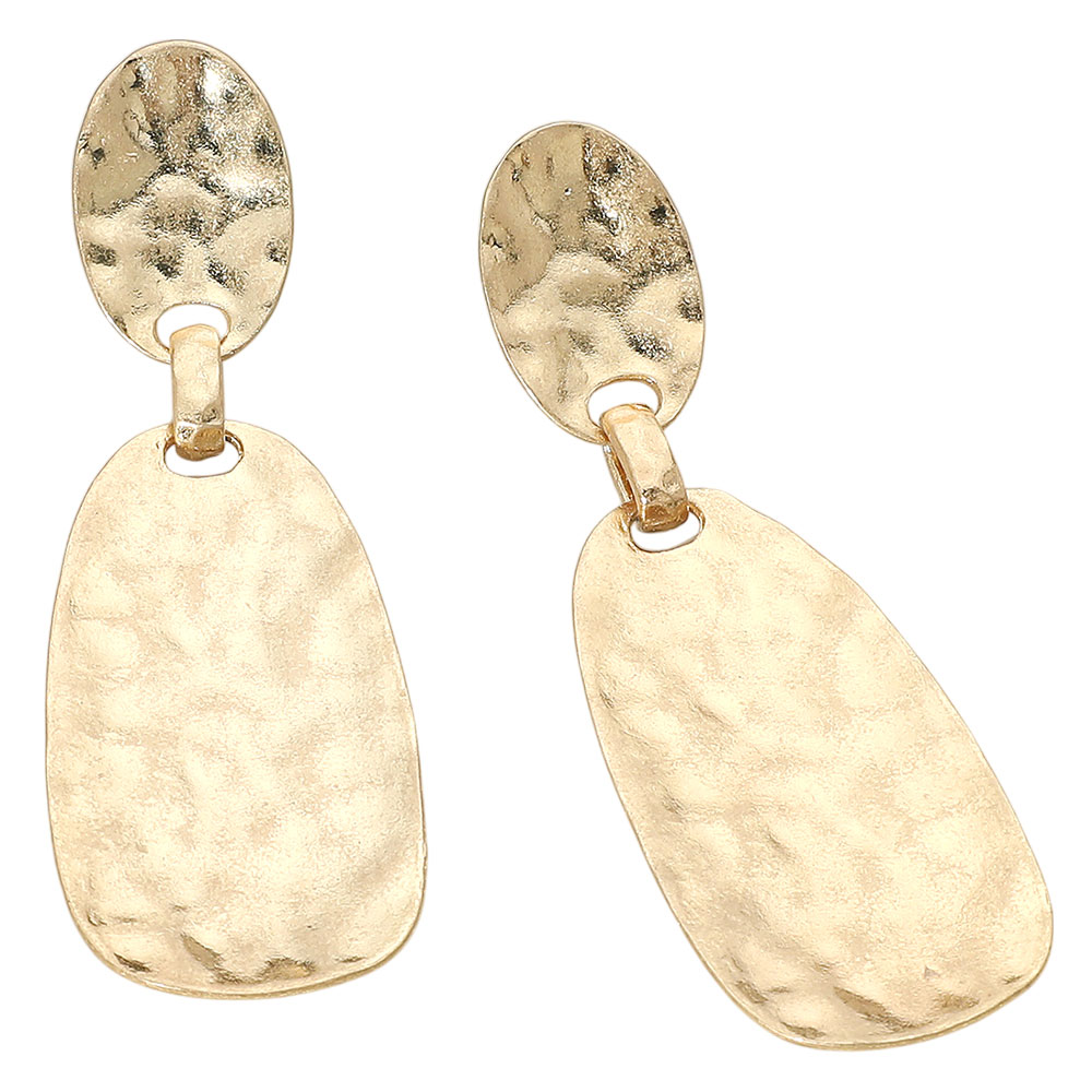 Hammered Brushed Metal Sculptural Plate Drop Earrings