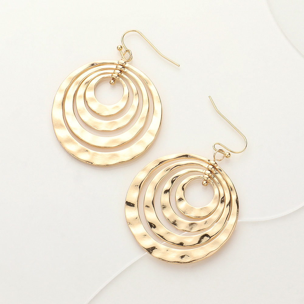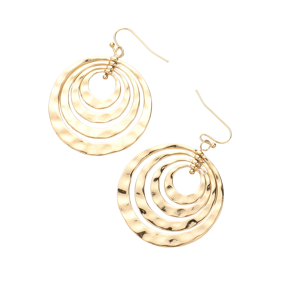 18K Gold Dipped Brass Metal Hammerd Open Teardrop Dangle Earrings