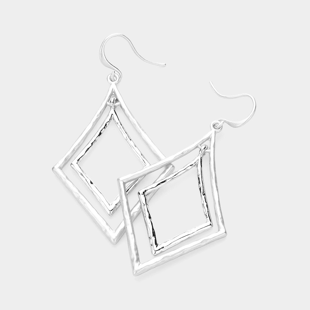 Hammered Metal Double Diamond Dangle Earrings