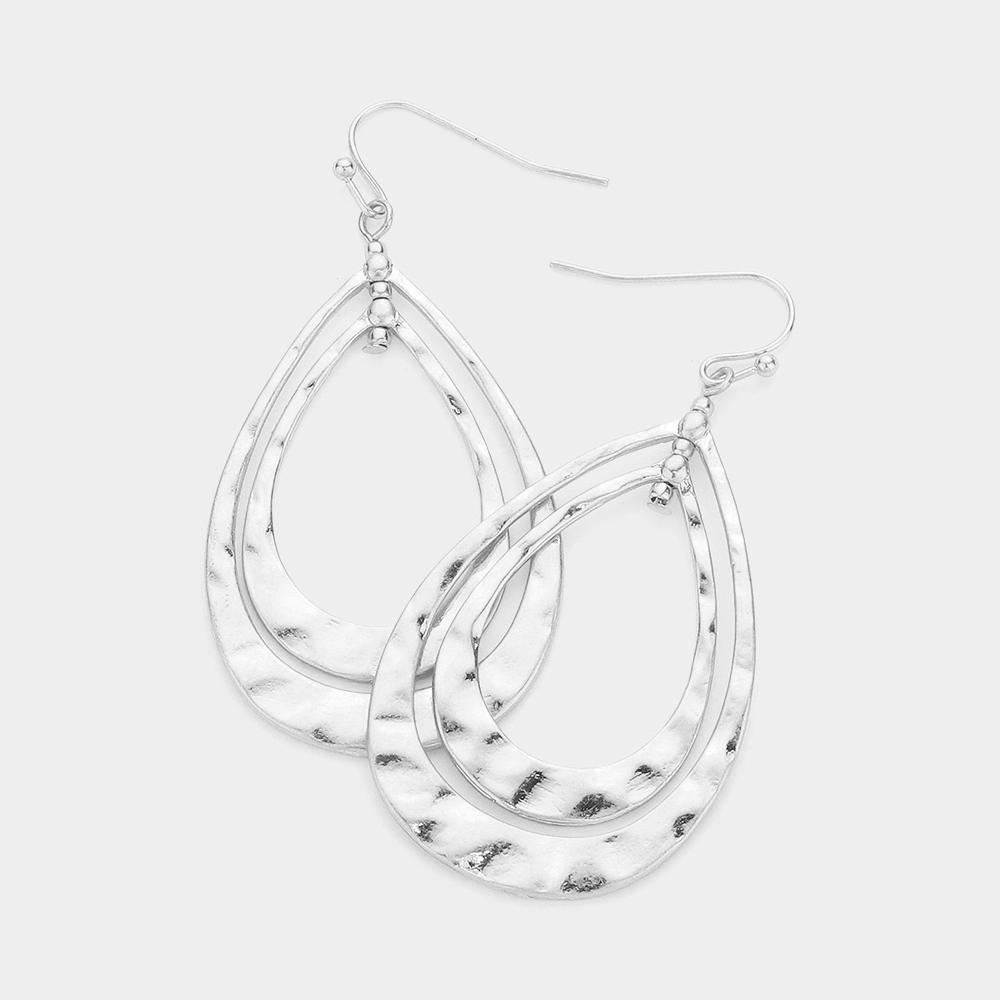Hammered Metal Double Layered Teardrop Dangle Earrings