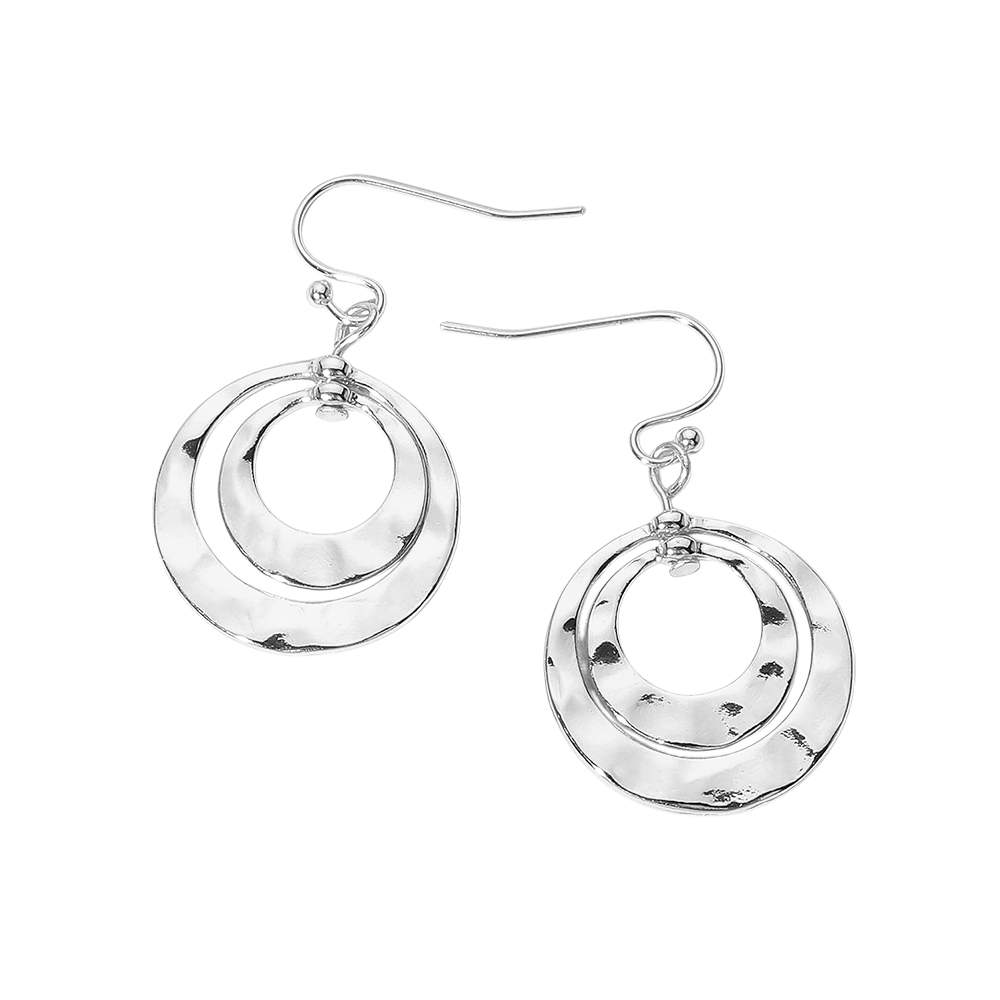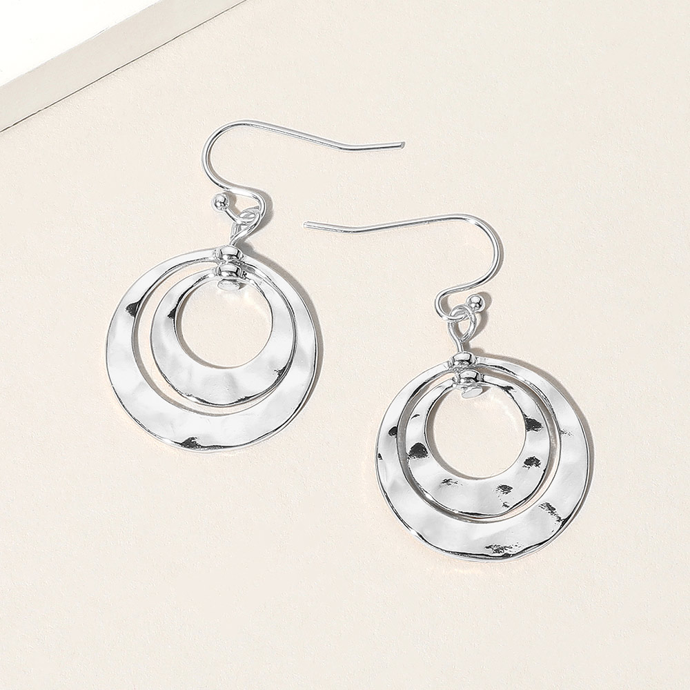 Hammered Metal Double Open Circle Layered Dangle Earrings
