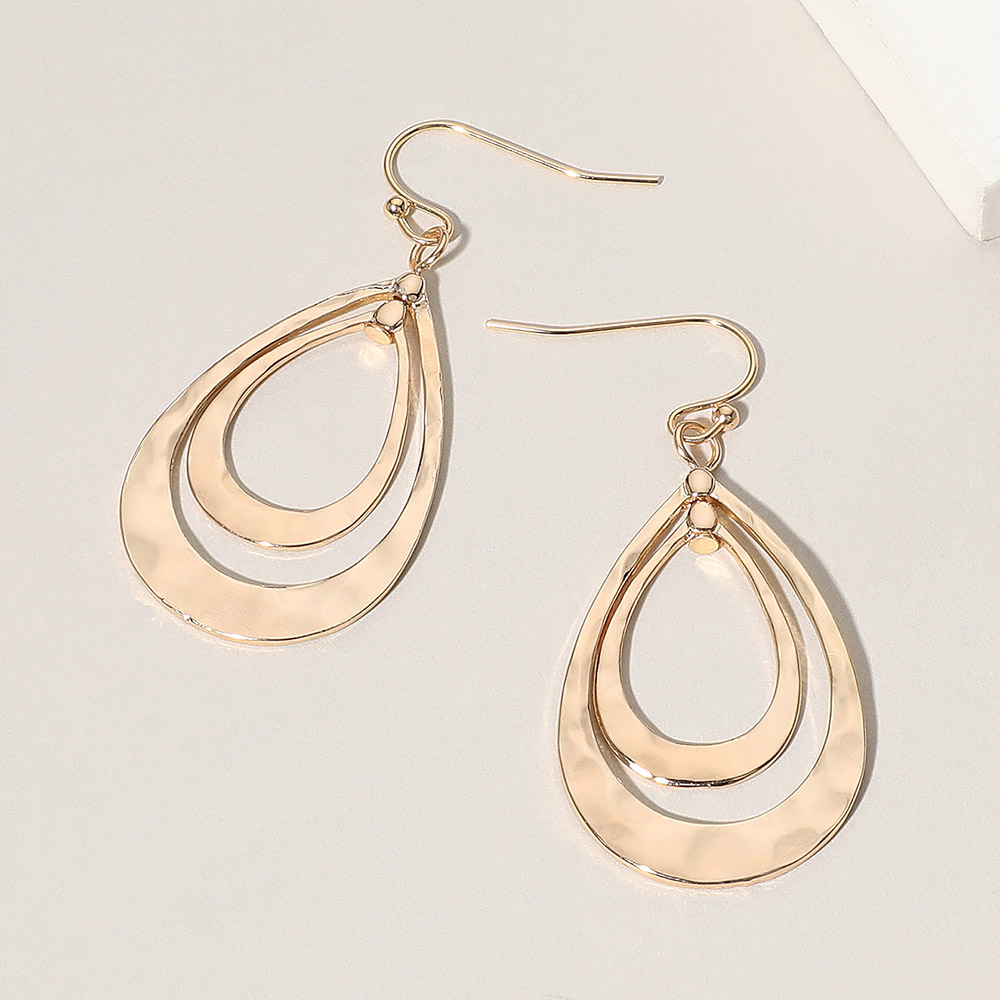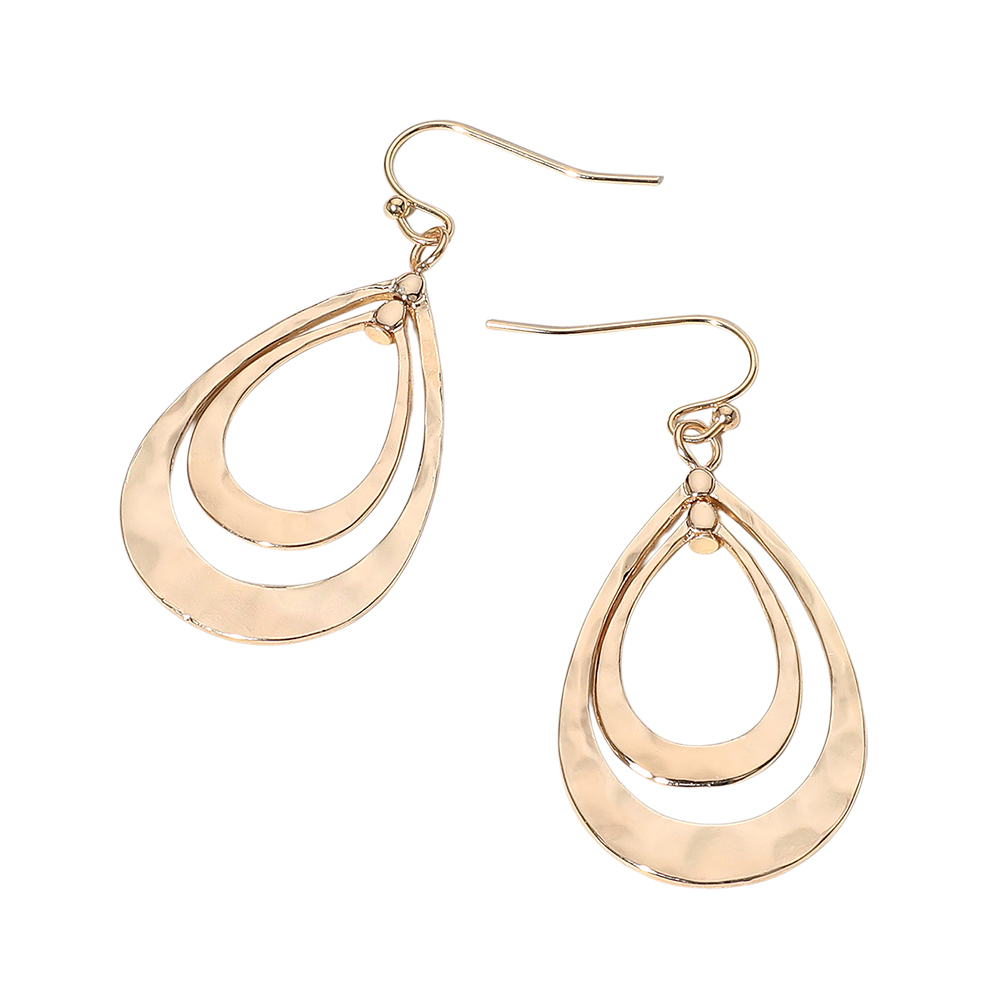 Hammered Metal Double Open Teardrop Layered Dangle Earrings