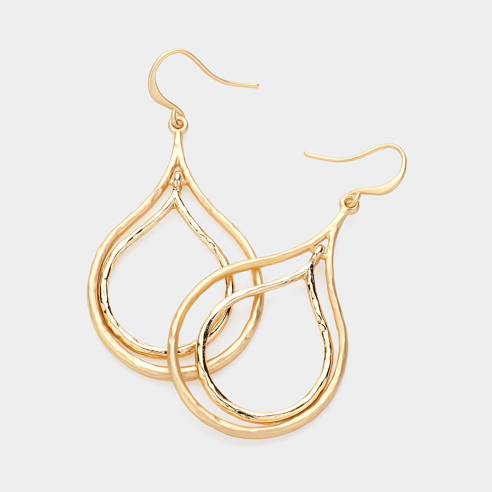 Hammered Metal Double Teardrop Dangle Earrings