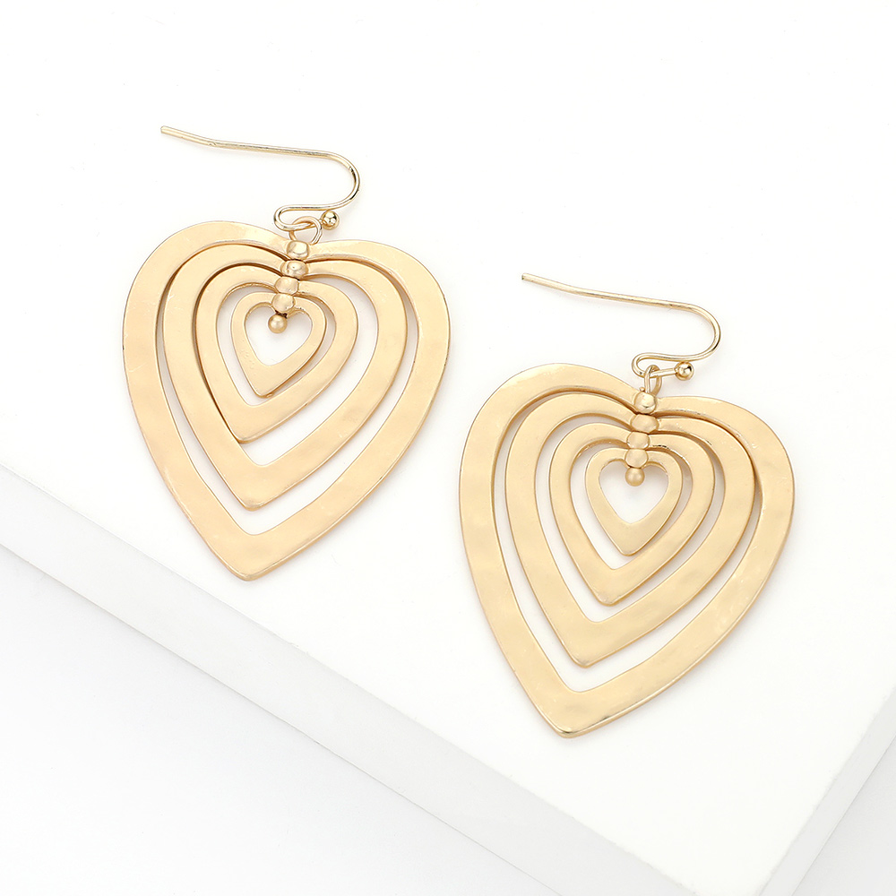 Rhinestone Embellished Metal Heart Beaded Open Circle Earrings