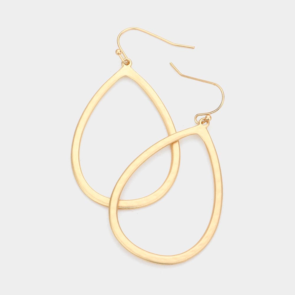 Filigree Flower Leaf Detailed Brass Metal Marquise Dangle Earrings