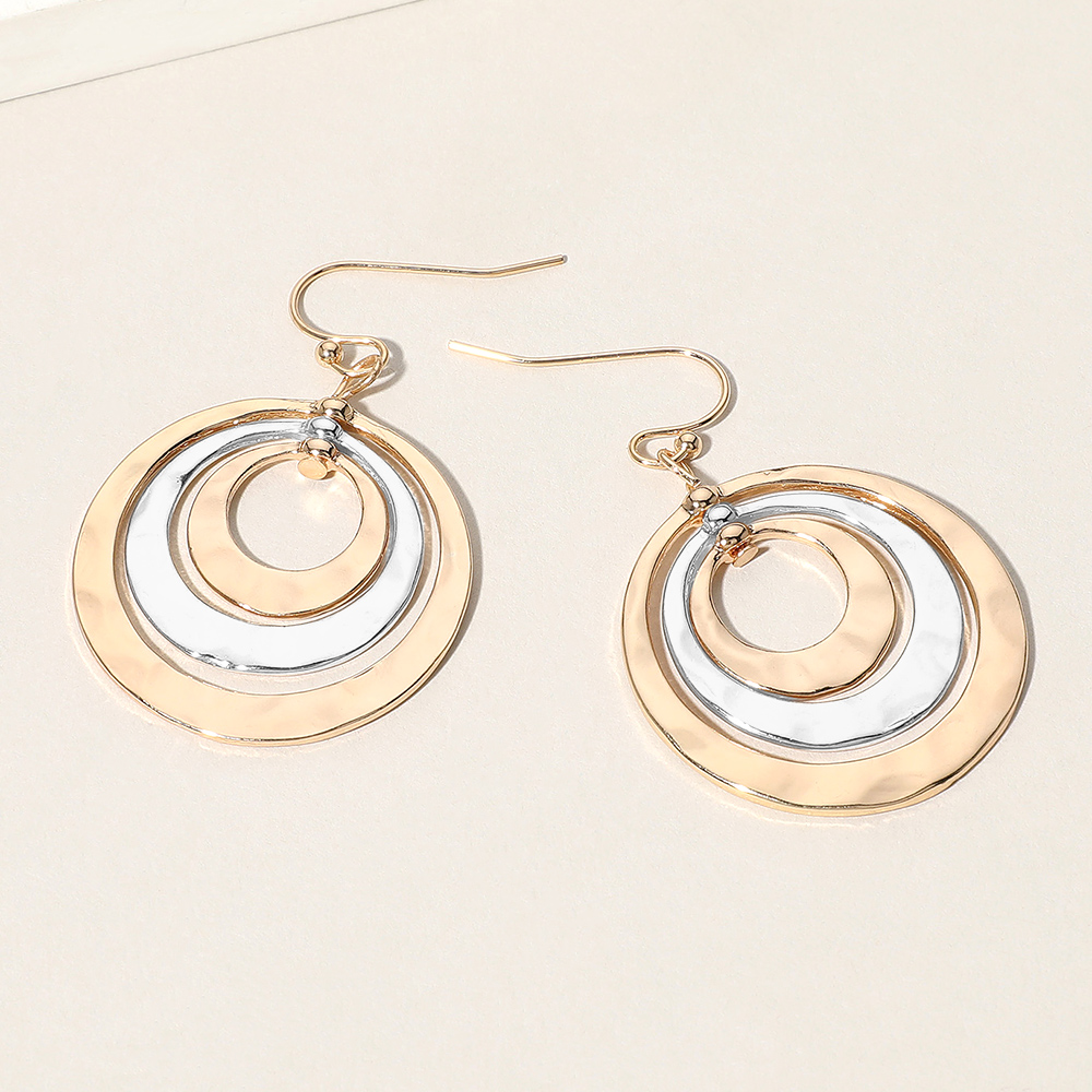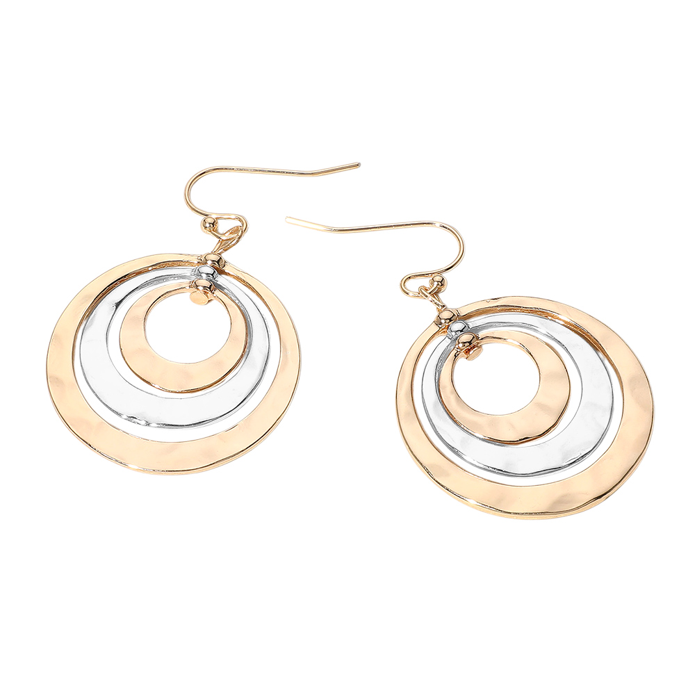 Hammered Metal Triple Open Circle Layered Dangle Earrings