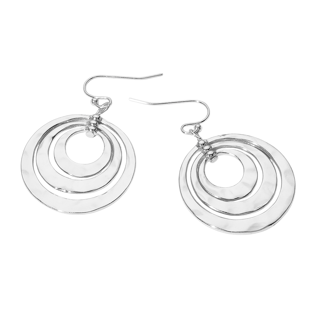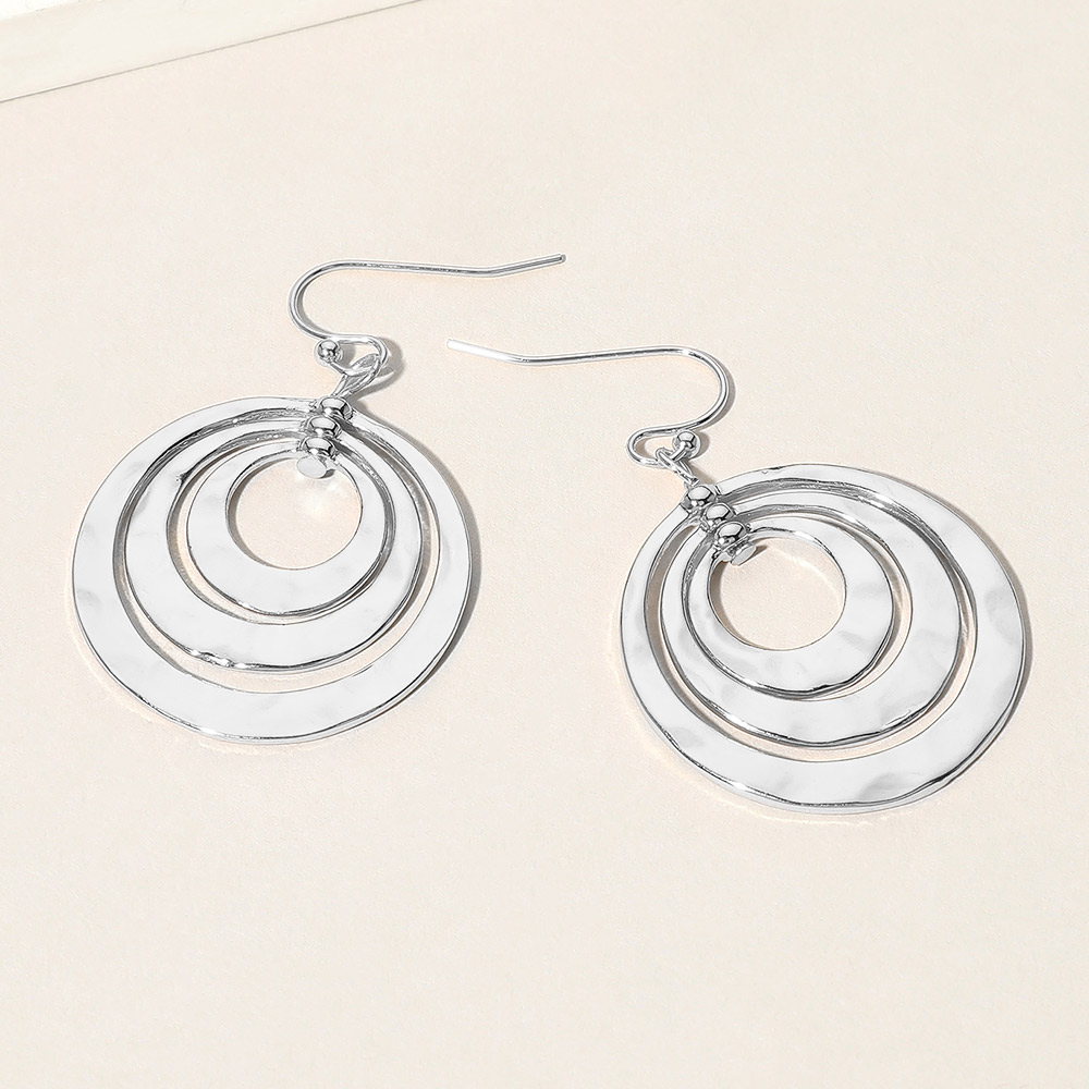 Hammered Metal Triple Open Circle Layered Dangle Earrings