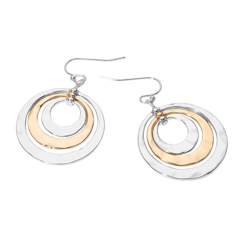 Hammered Metal Triple Open Circle Layered Dangle Earrings