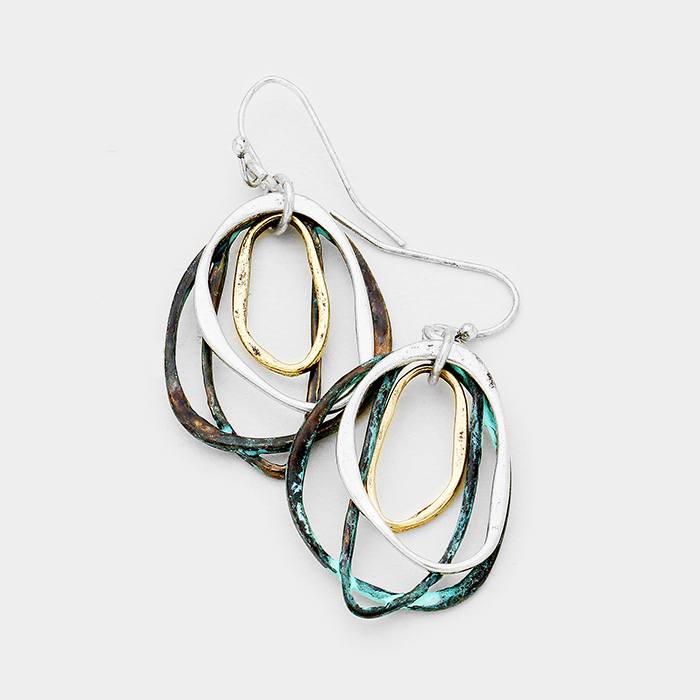 Layered Geo Metal Oval Hoop Dangle Earrings