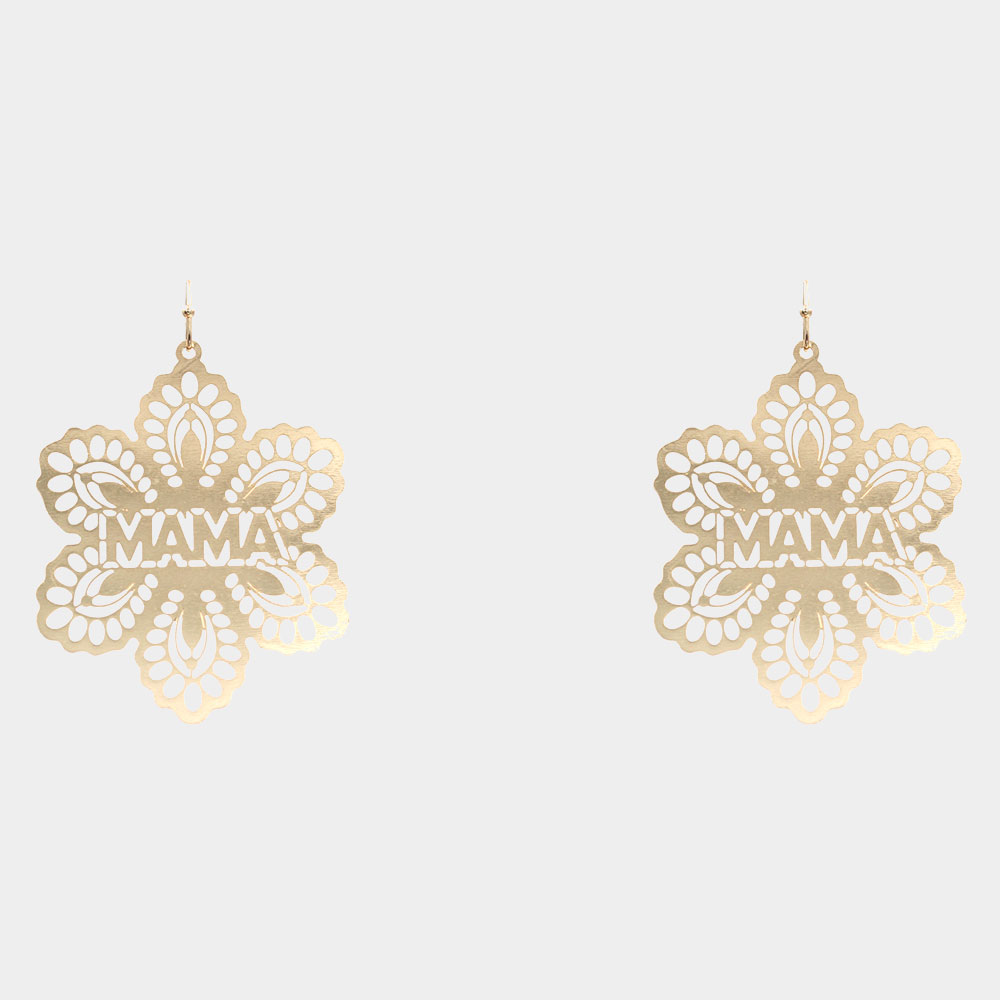 MAMA Message Colored Brass Metal Flower Dangle Earrings